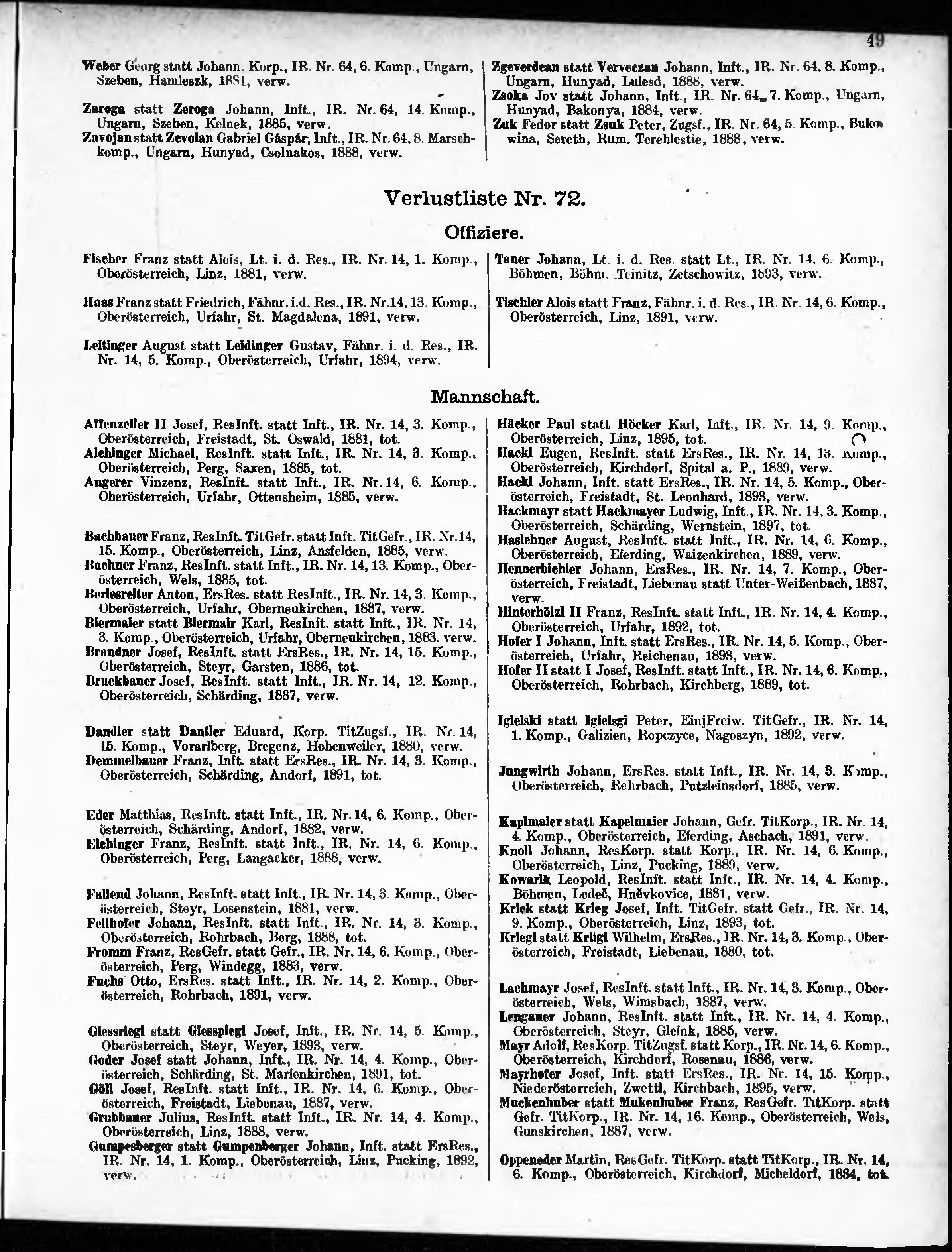 Verlustliste ausgegeben am