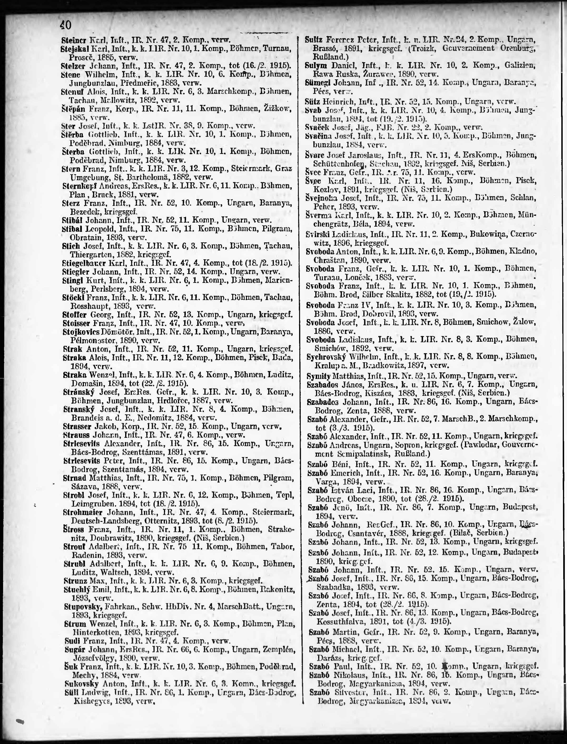 Verlustliste ausgegeben am