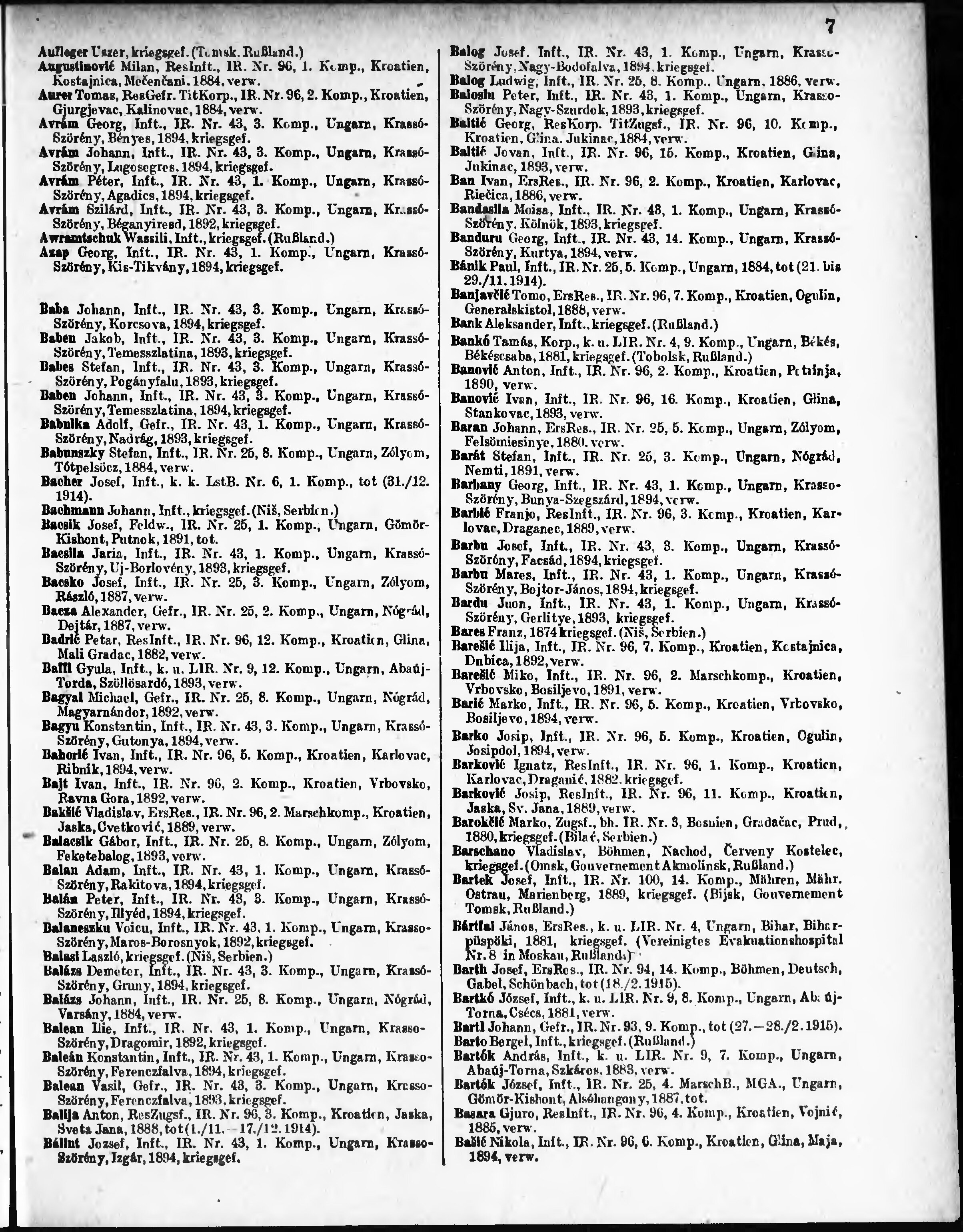 Verlustliste ausgegeben am