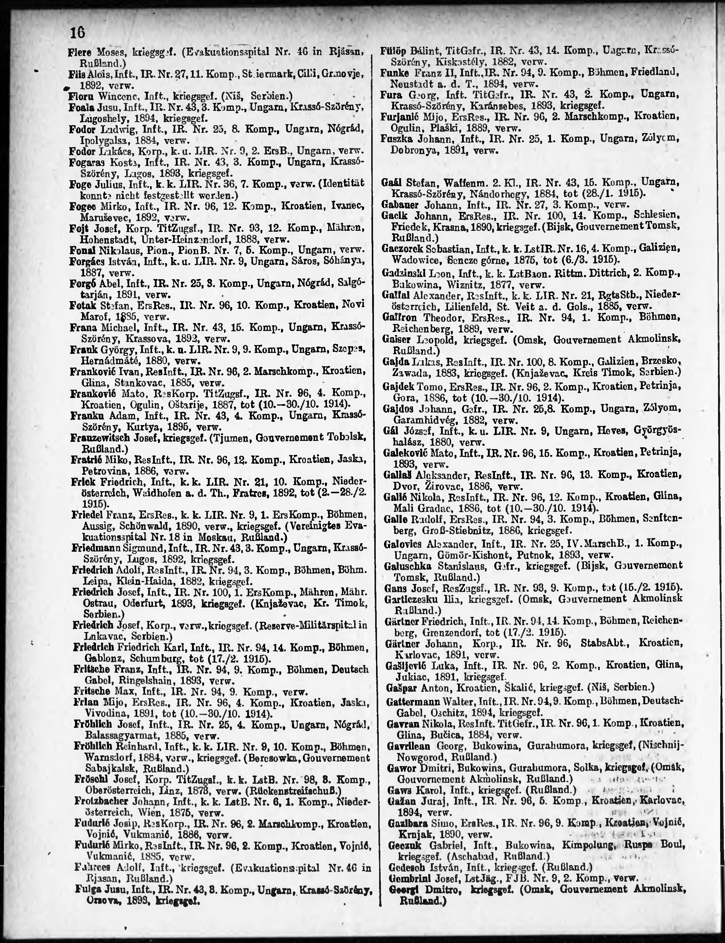 Verlustliste ausgegeben am