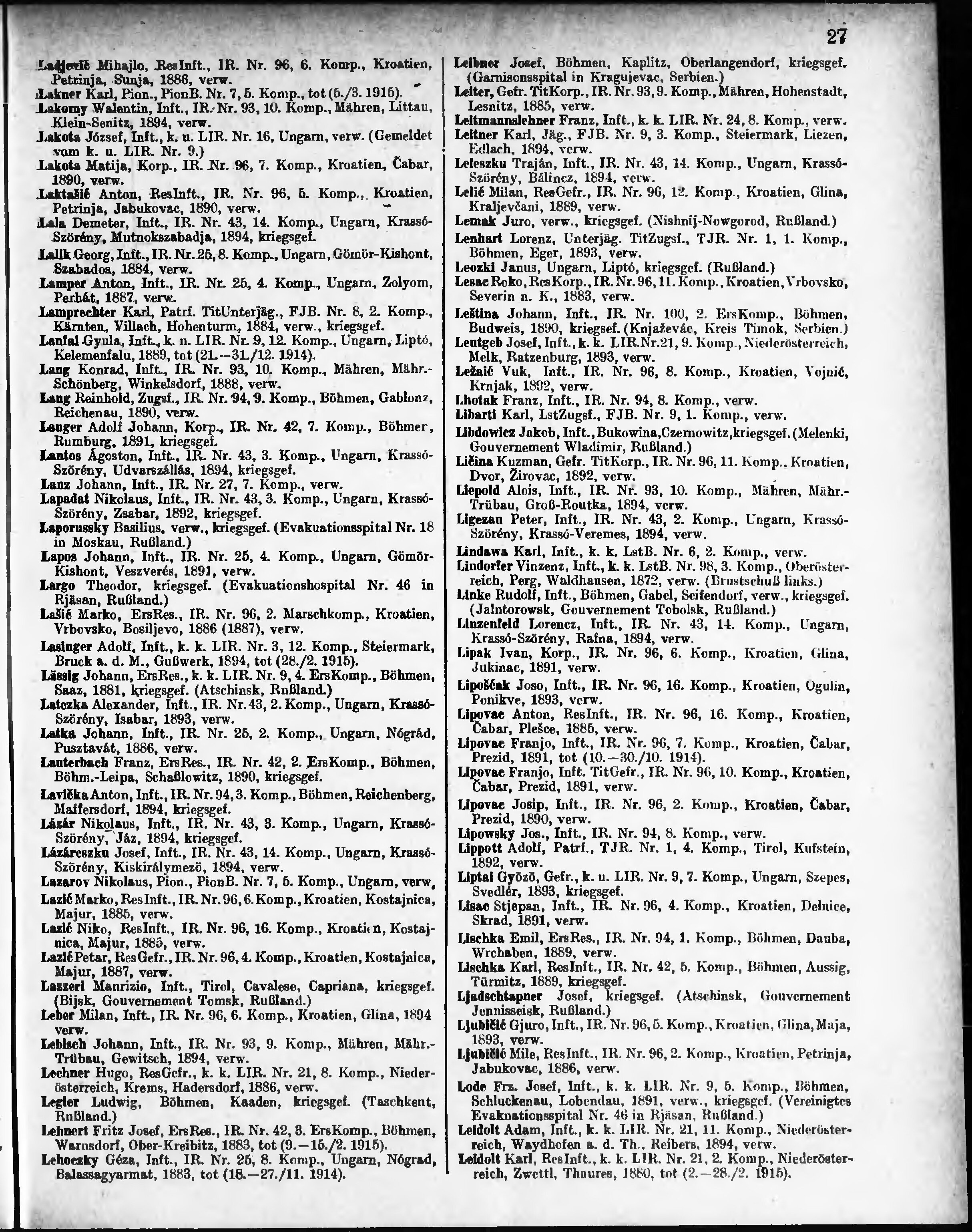 Verlustliste ausgegeben am