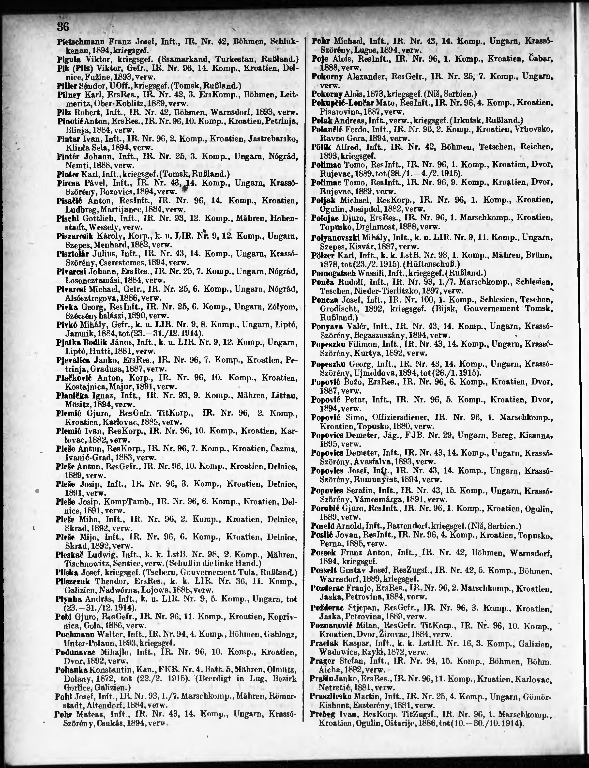 Verlustliste ausgegeben am