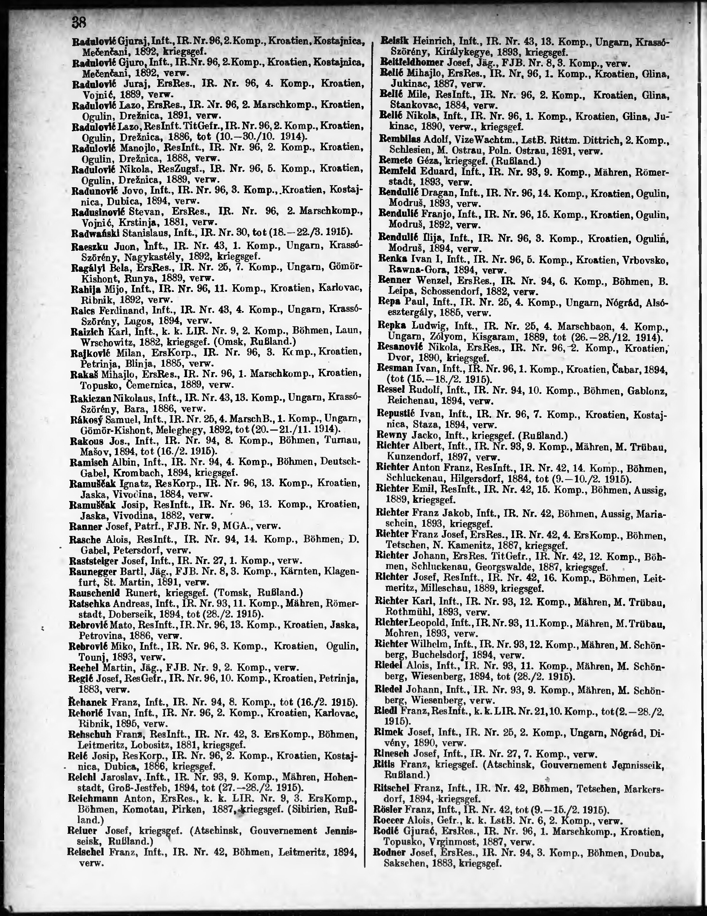 Verlustliste ausgegeben am