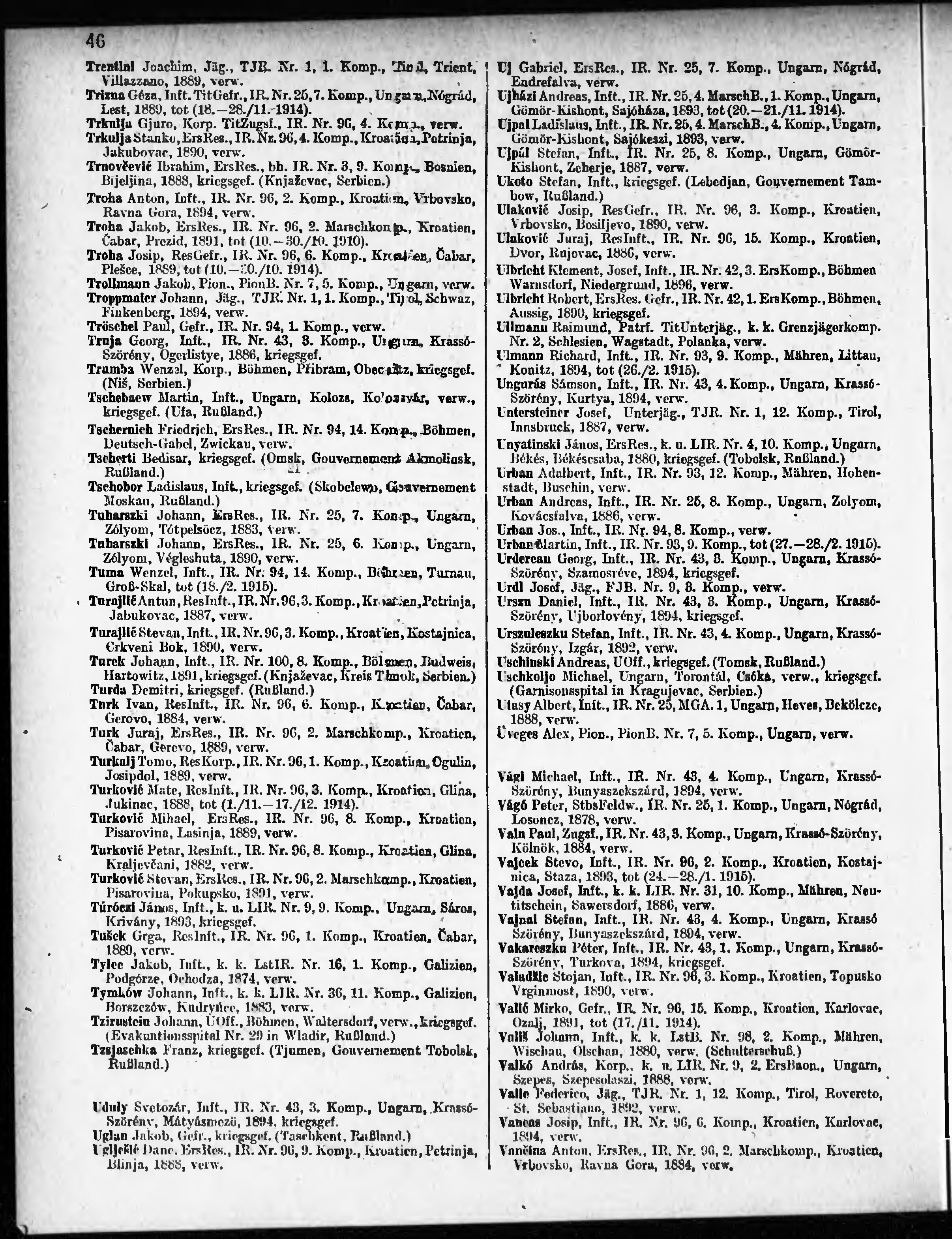 Verlustliste ausgegeben am