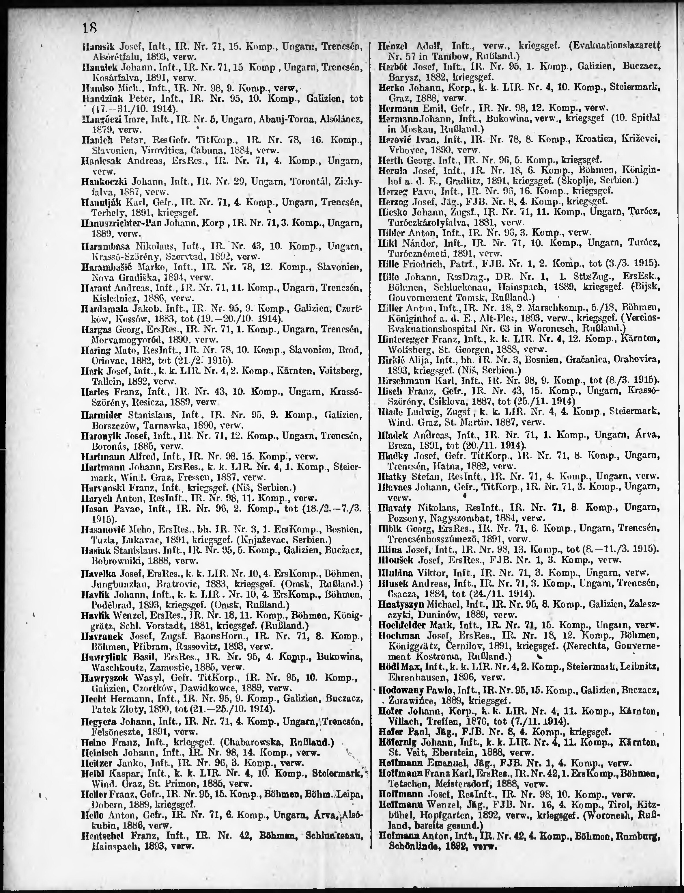 Verlustliste ausgegeben am