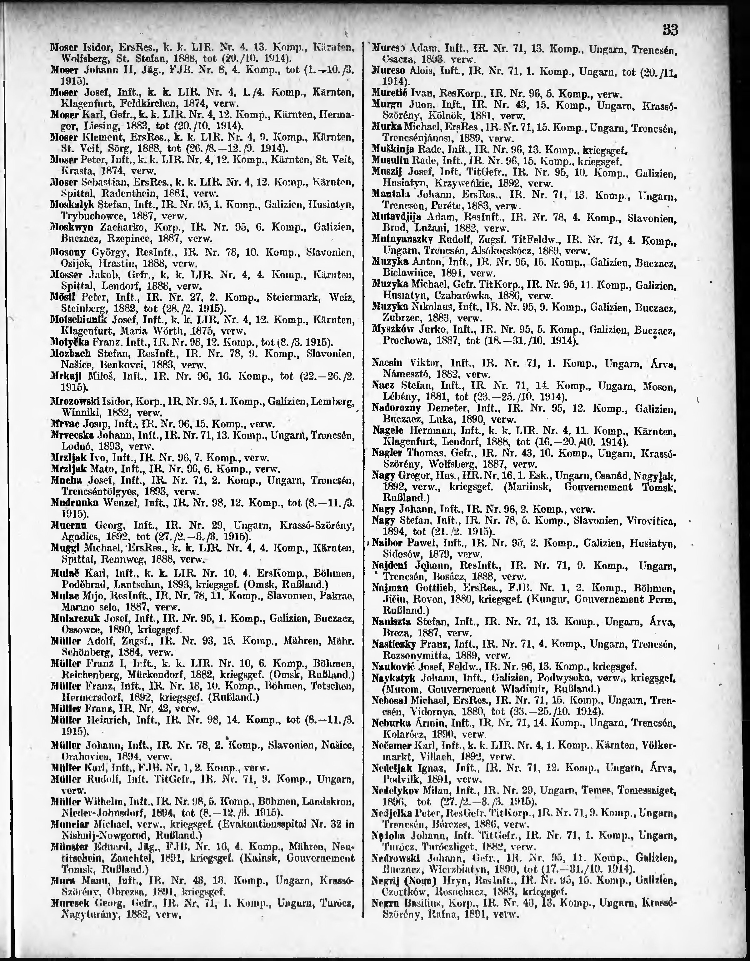Verlustliste ausgegeben am