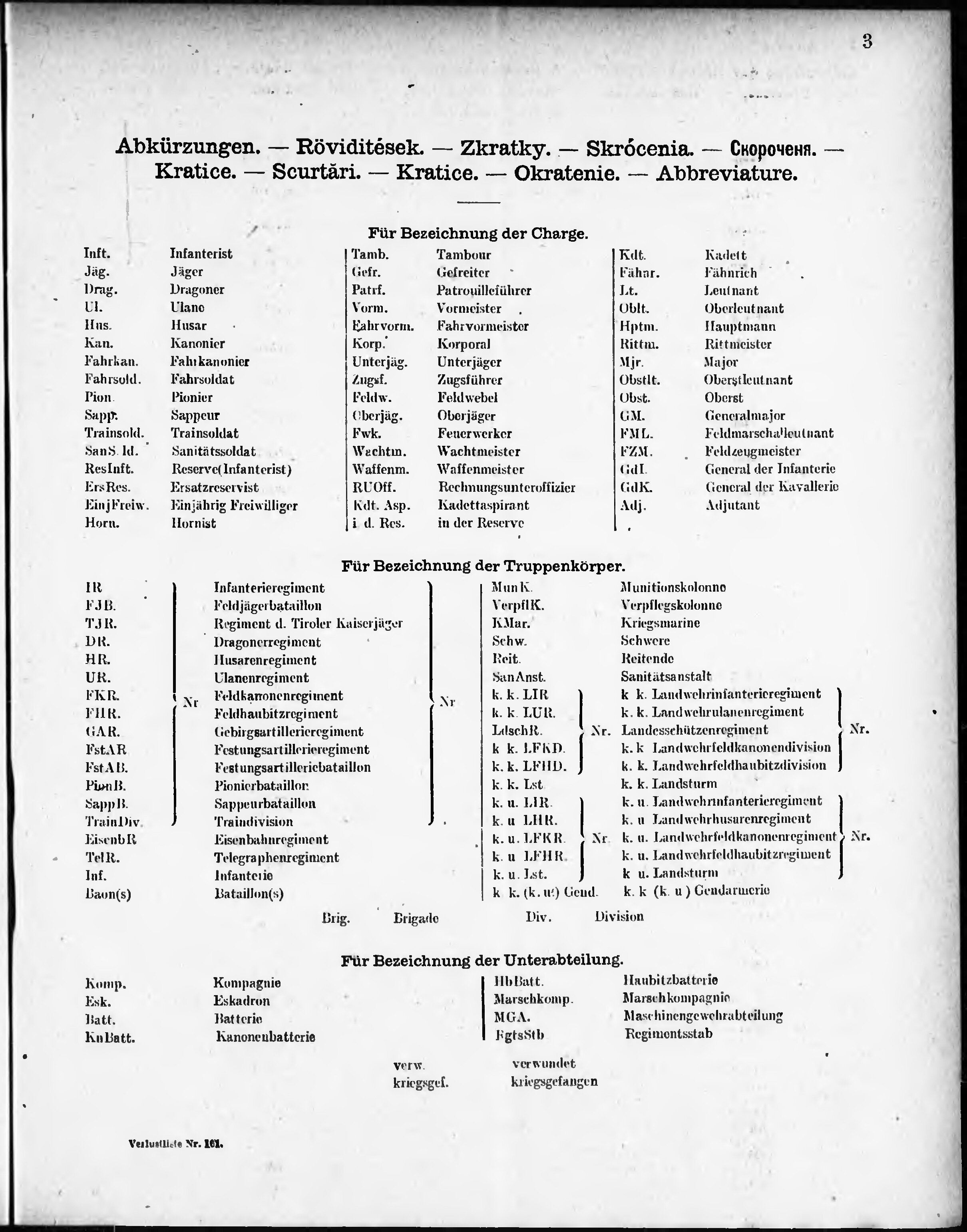 Verlustliste ausgegeben am