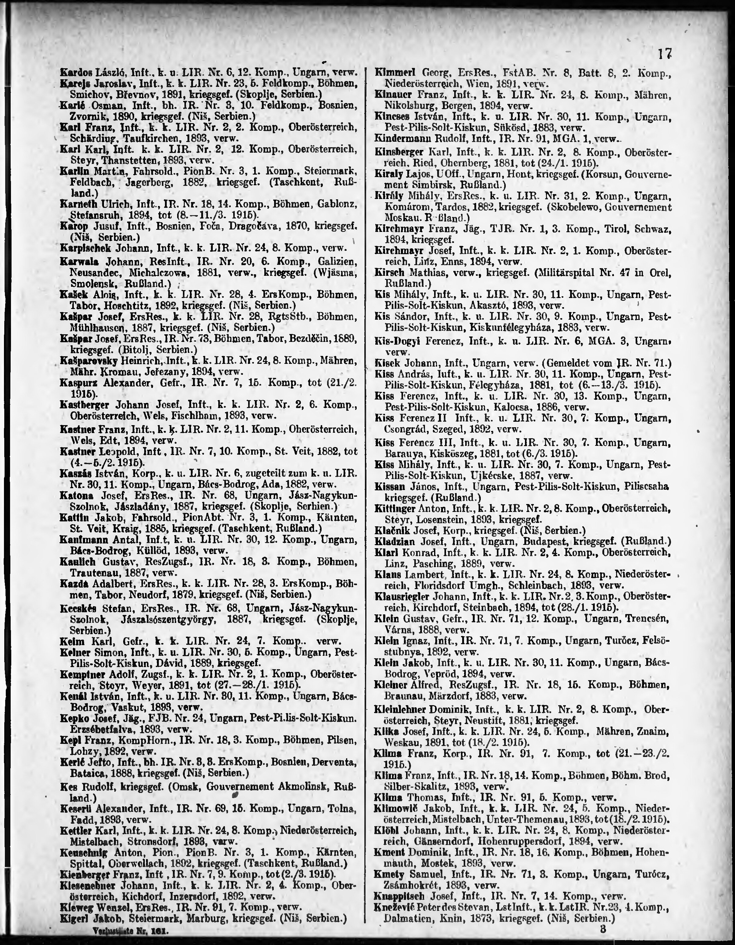 Verlustliste ausgegeben am