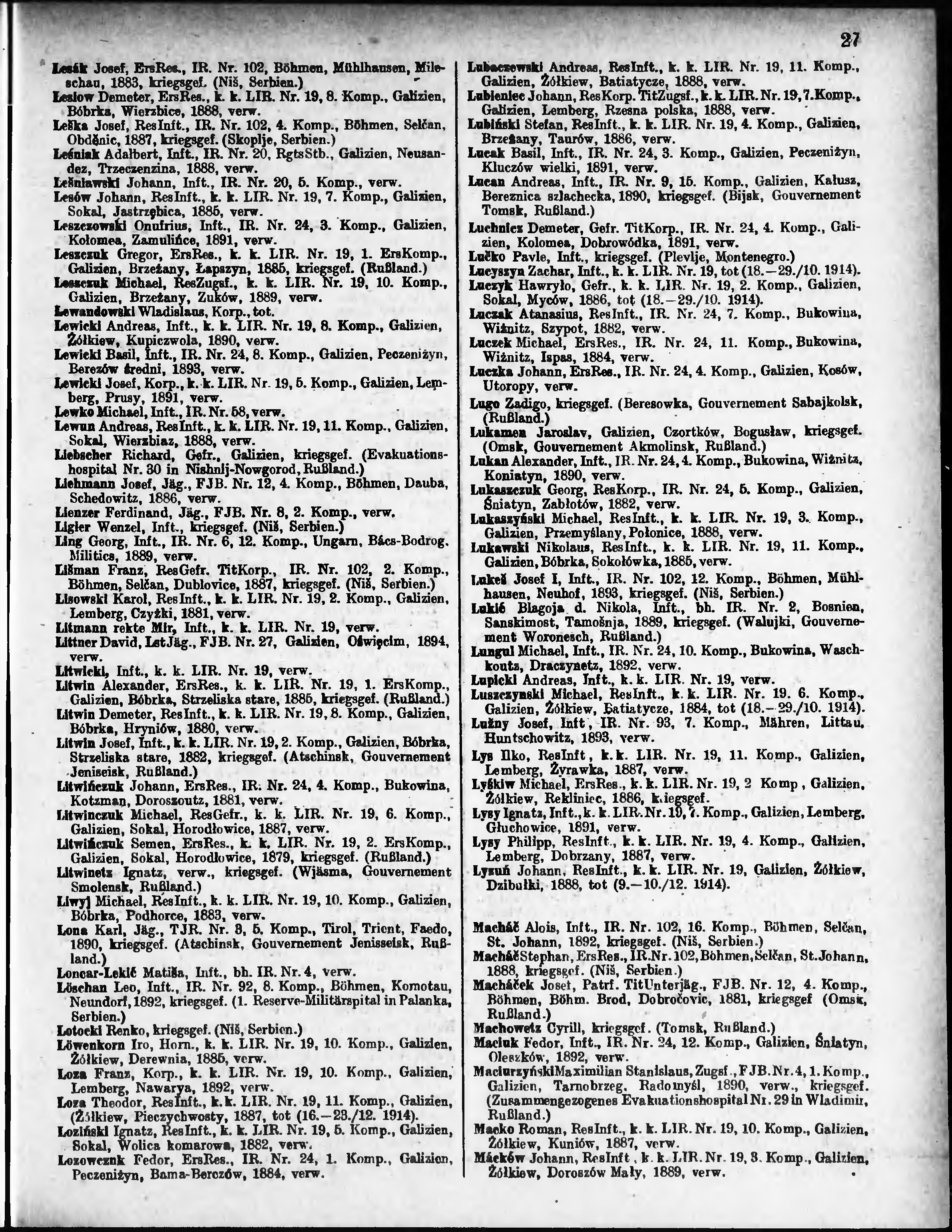 Verlustliste ausgegeben am