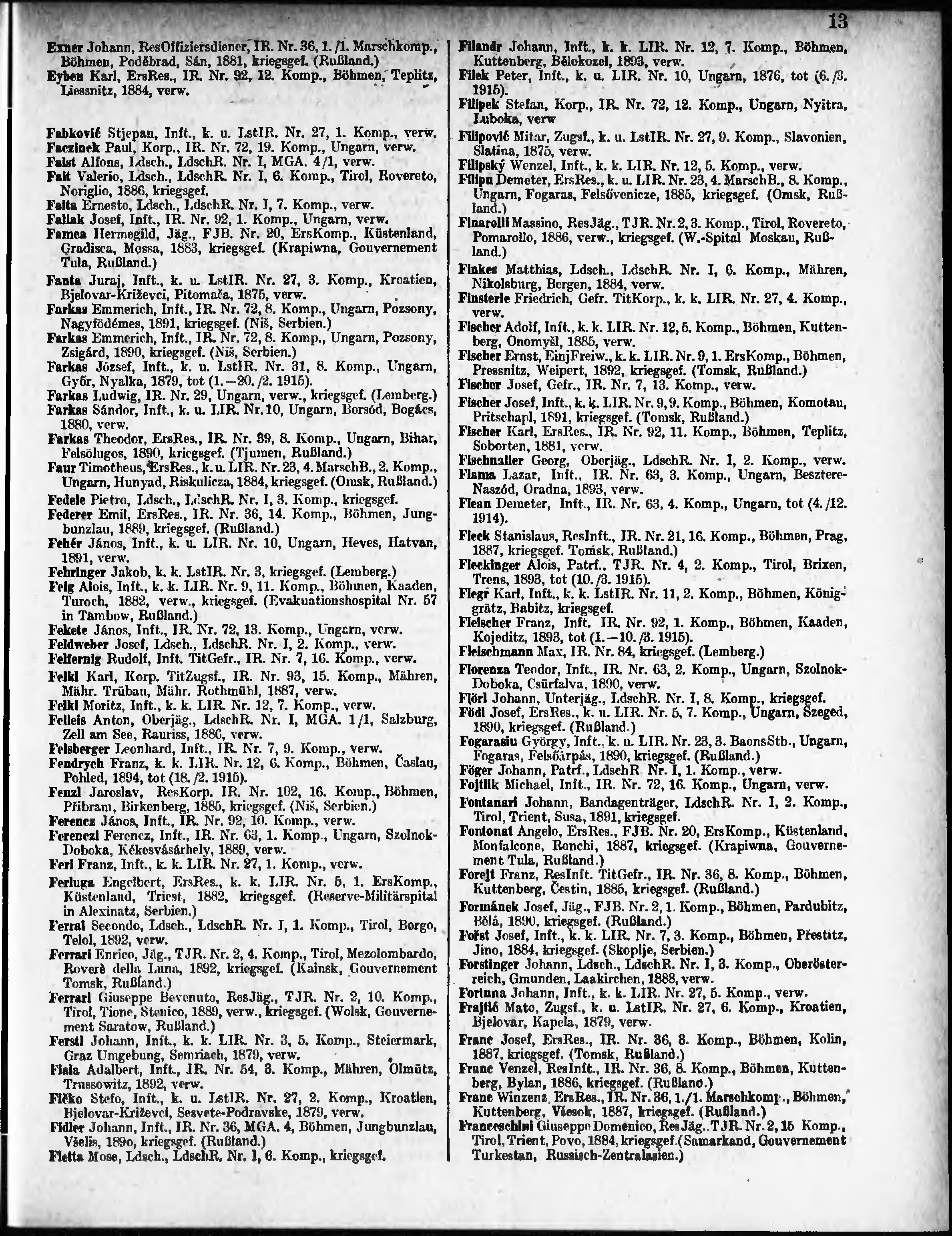 Verlustliste ausgegeben am