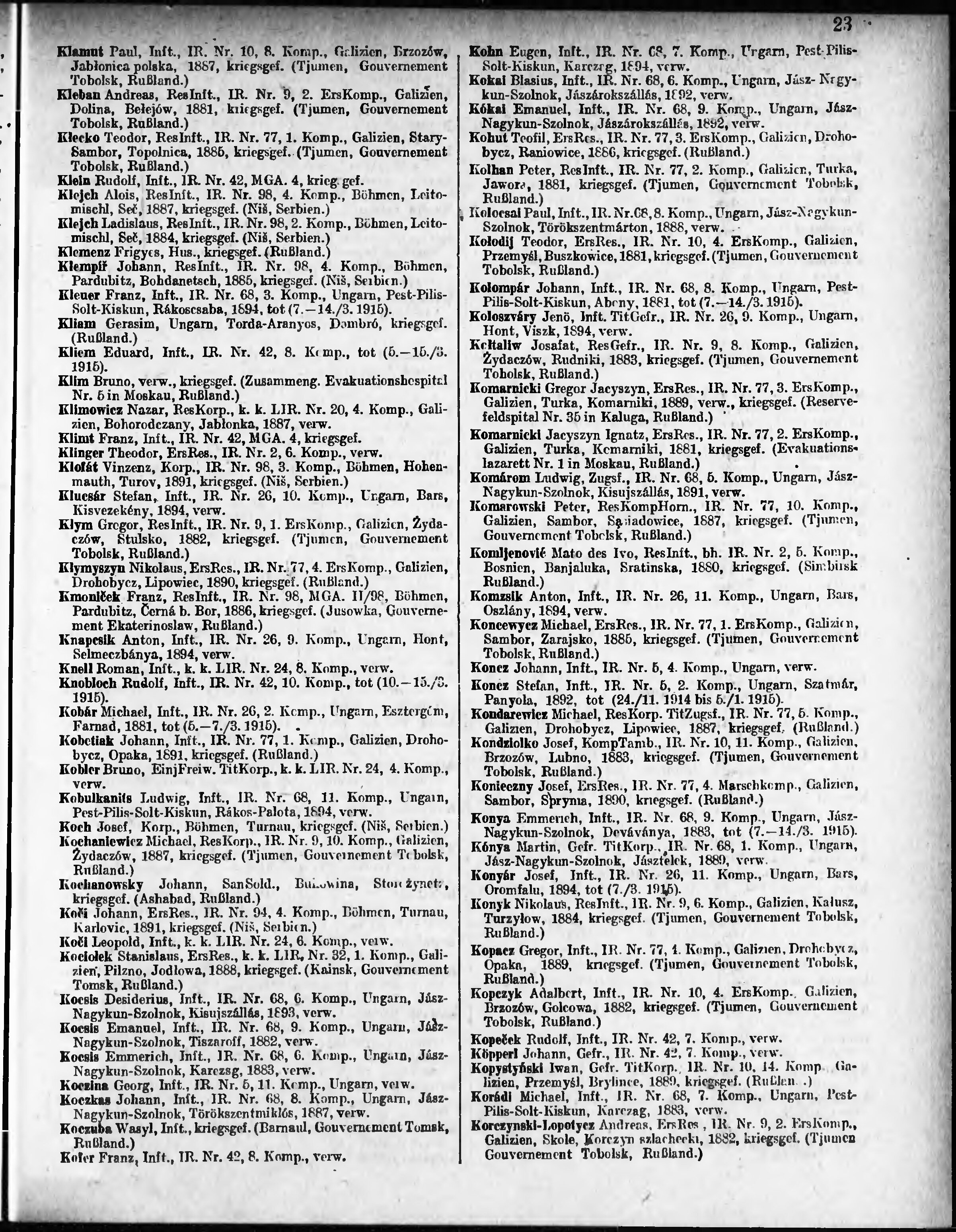 Verlustliste ausgegeben am