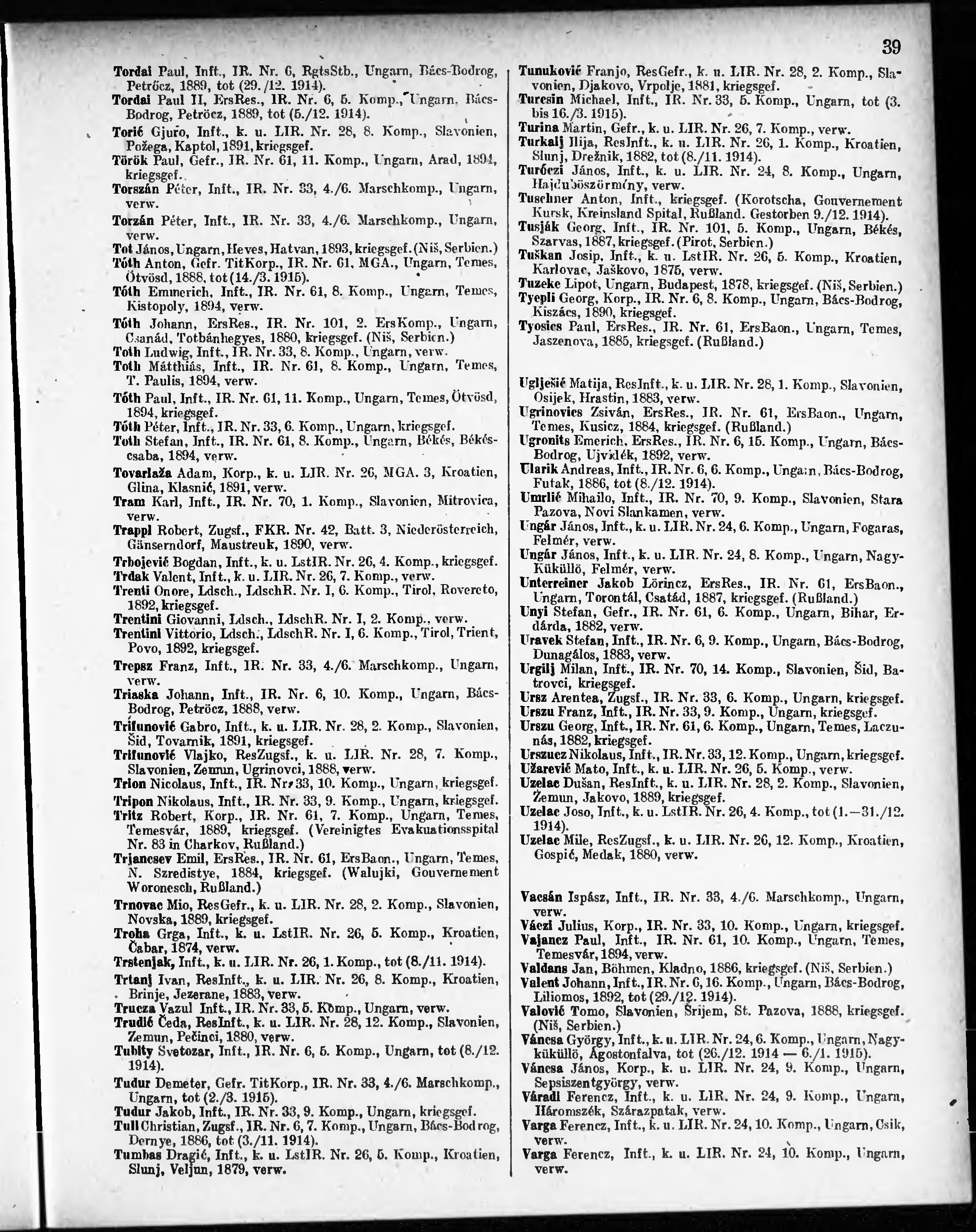 Verlustliste ausgegeben am