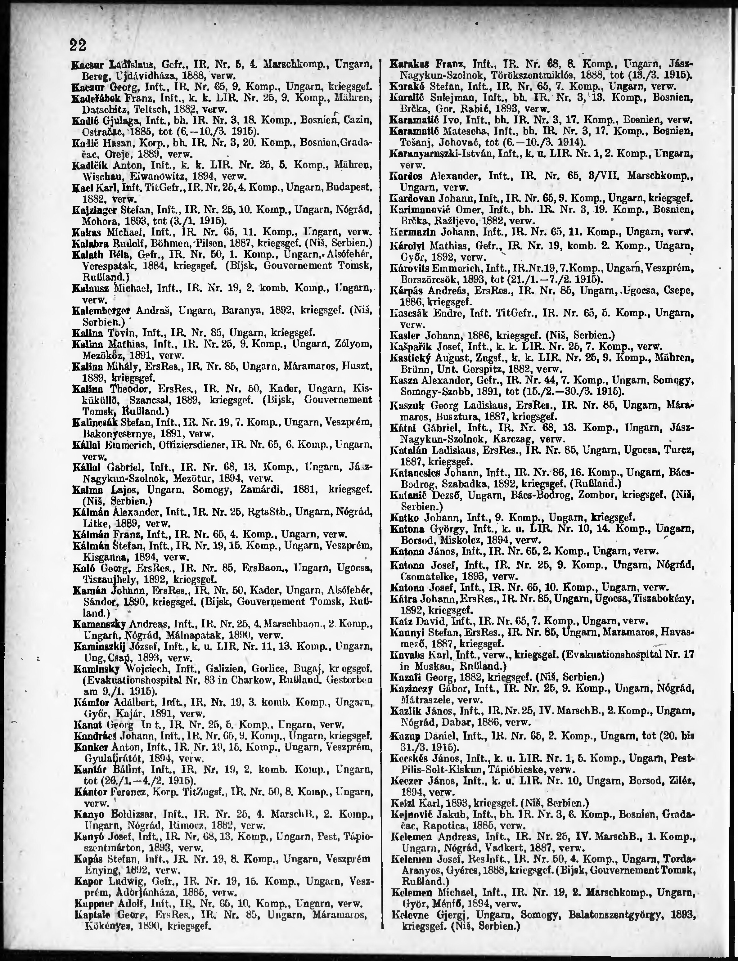 Verlustliste ausgegeben am