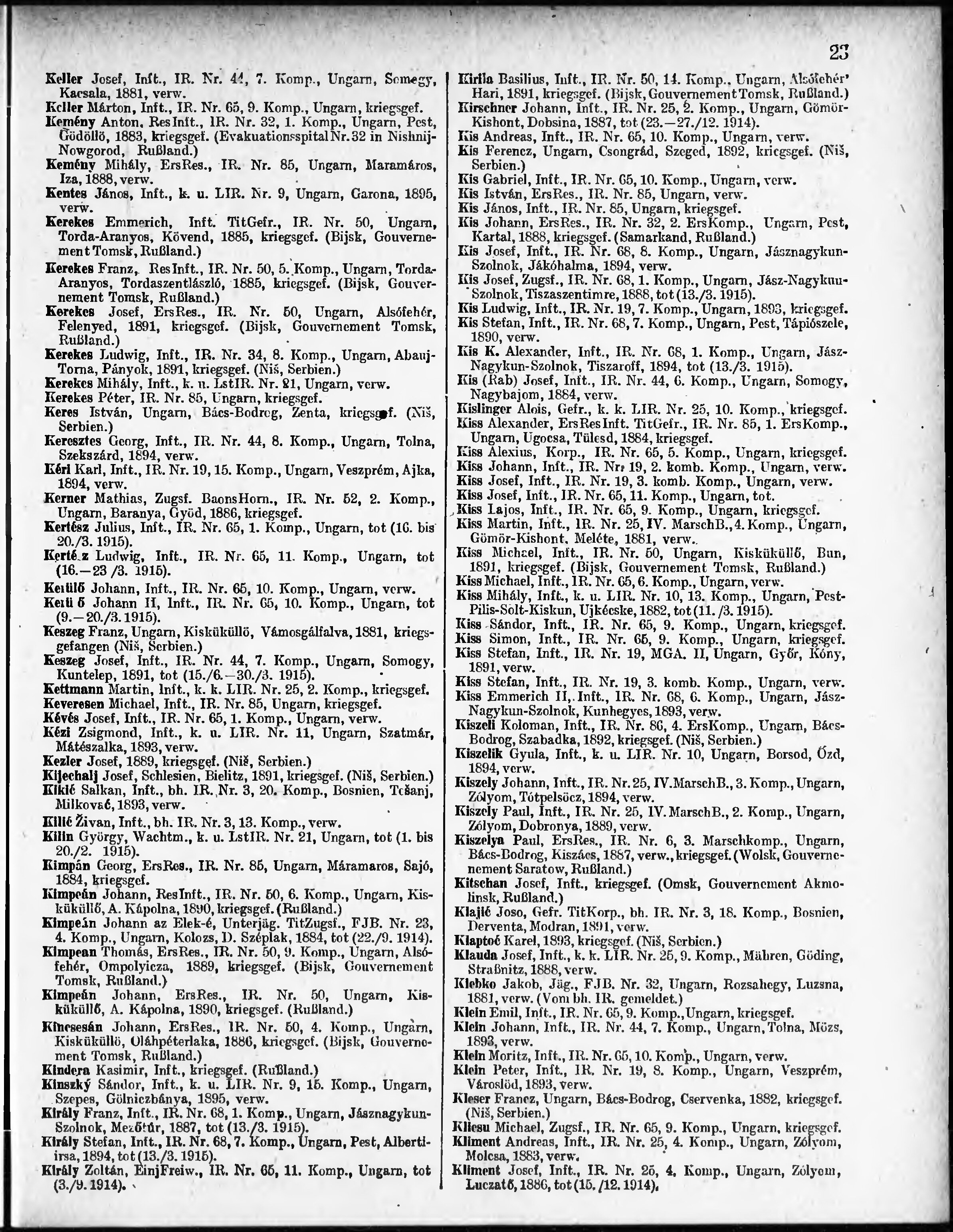 Verlustliste ausgegeben am