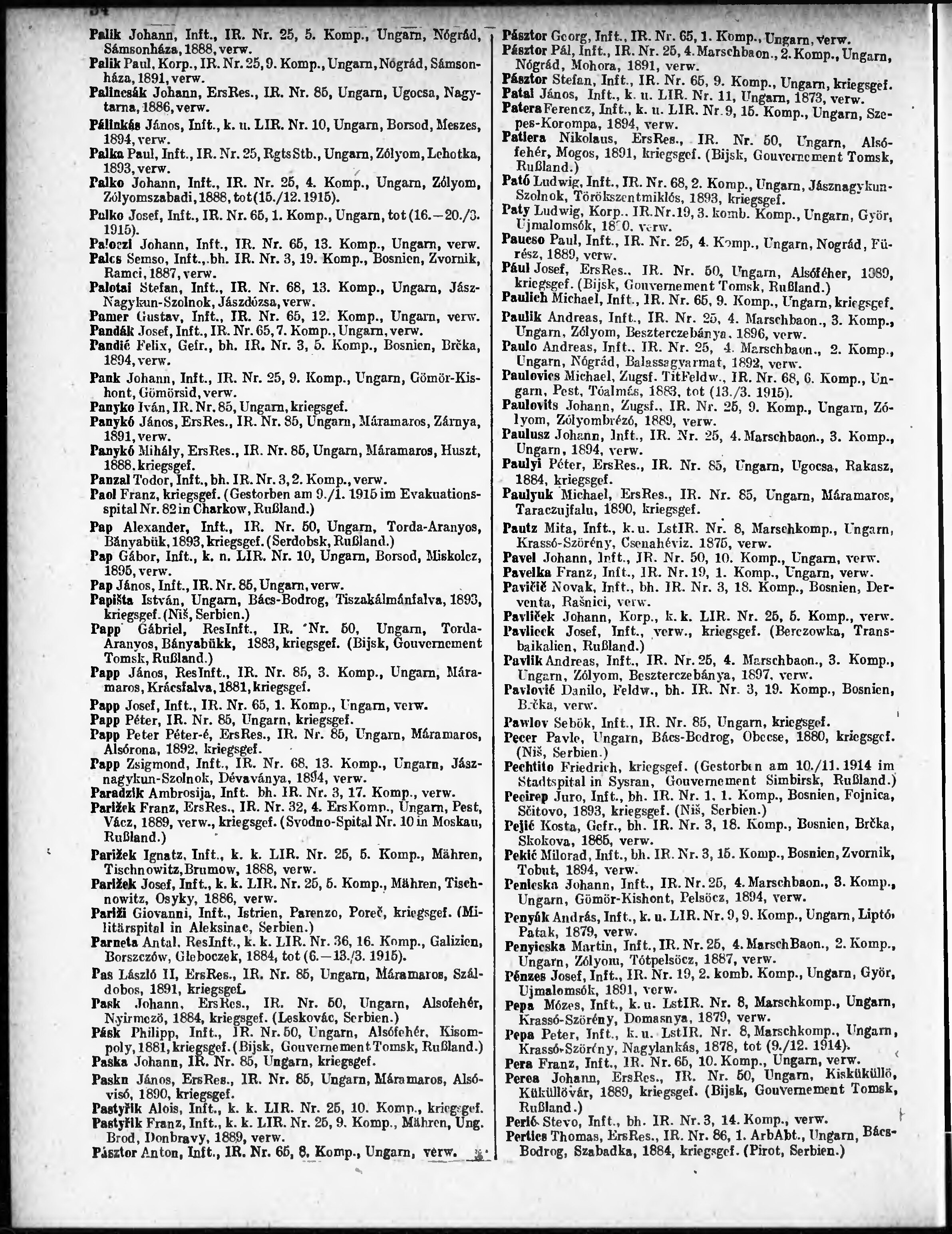 Verlustliste ausgegeben am