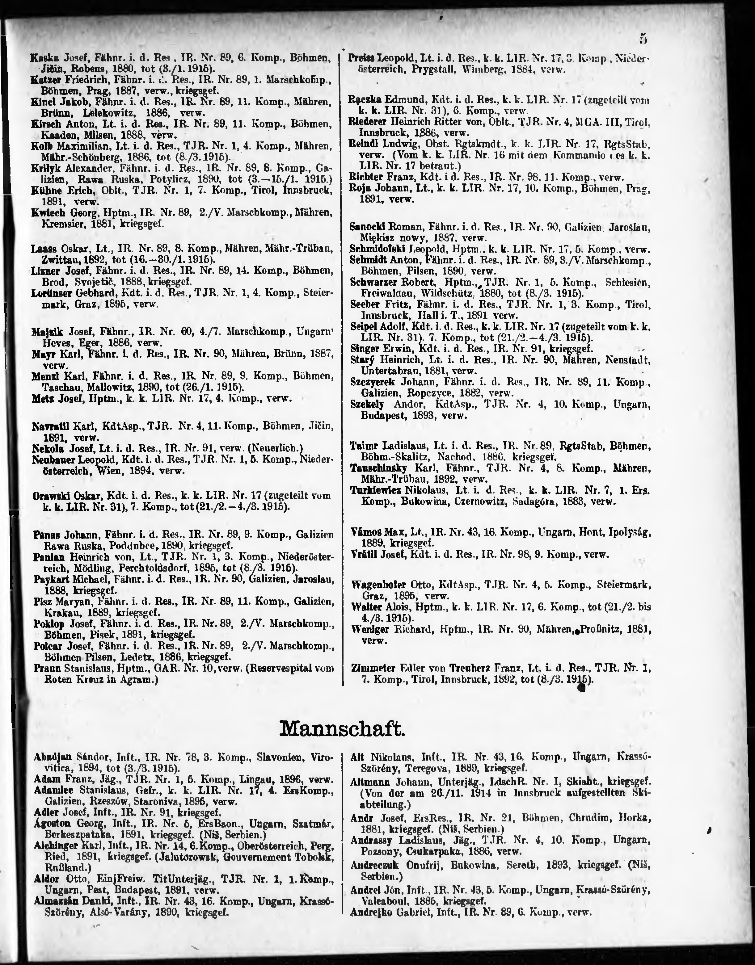 Verlustliste ausgegeben am