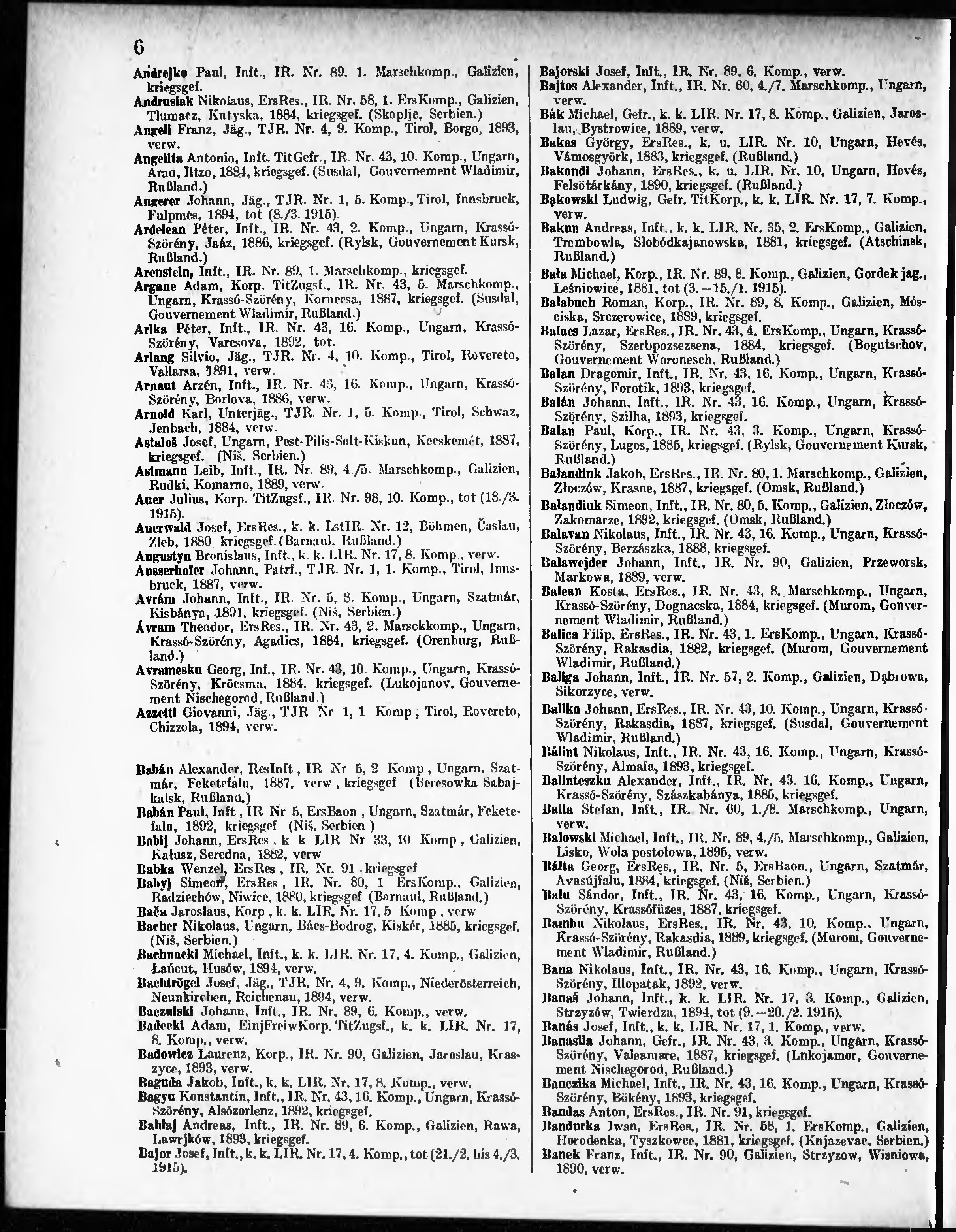 Verlustliste ausgegeben am