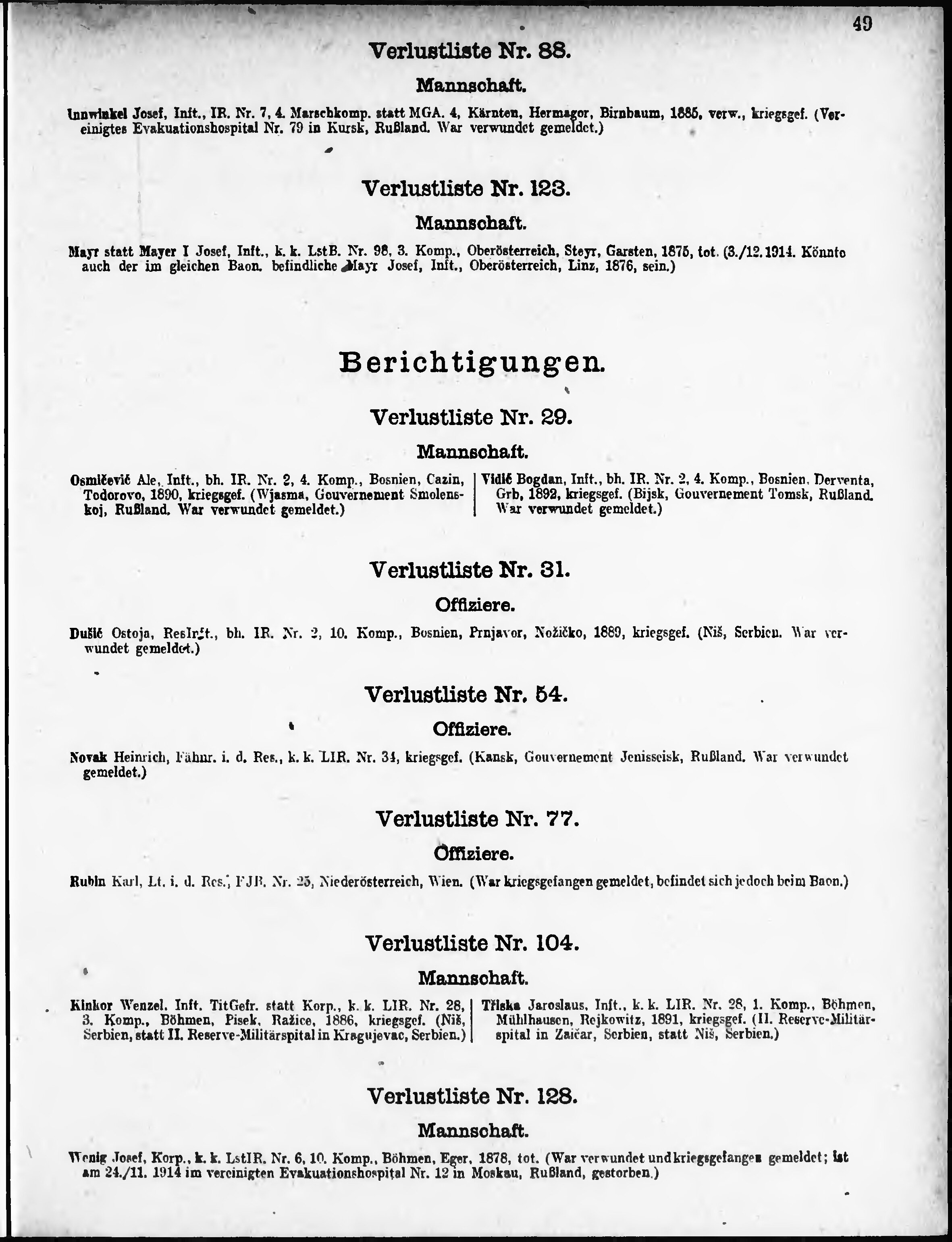 Verlustliste ausgegeben am