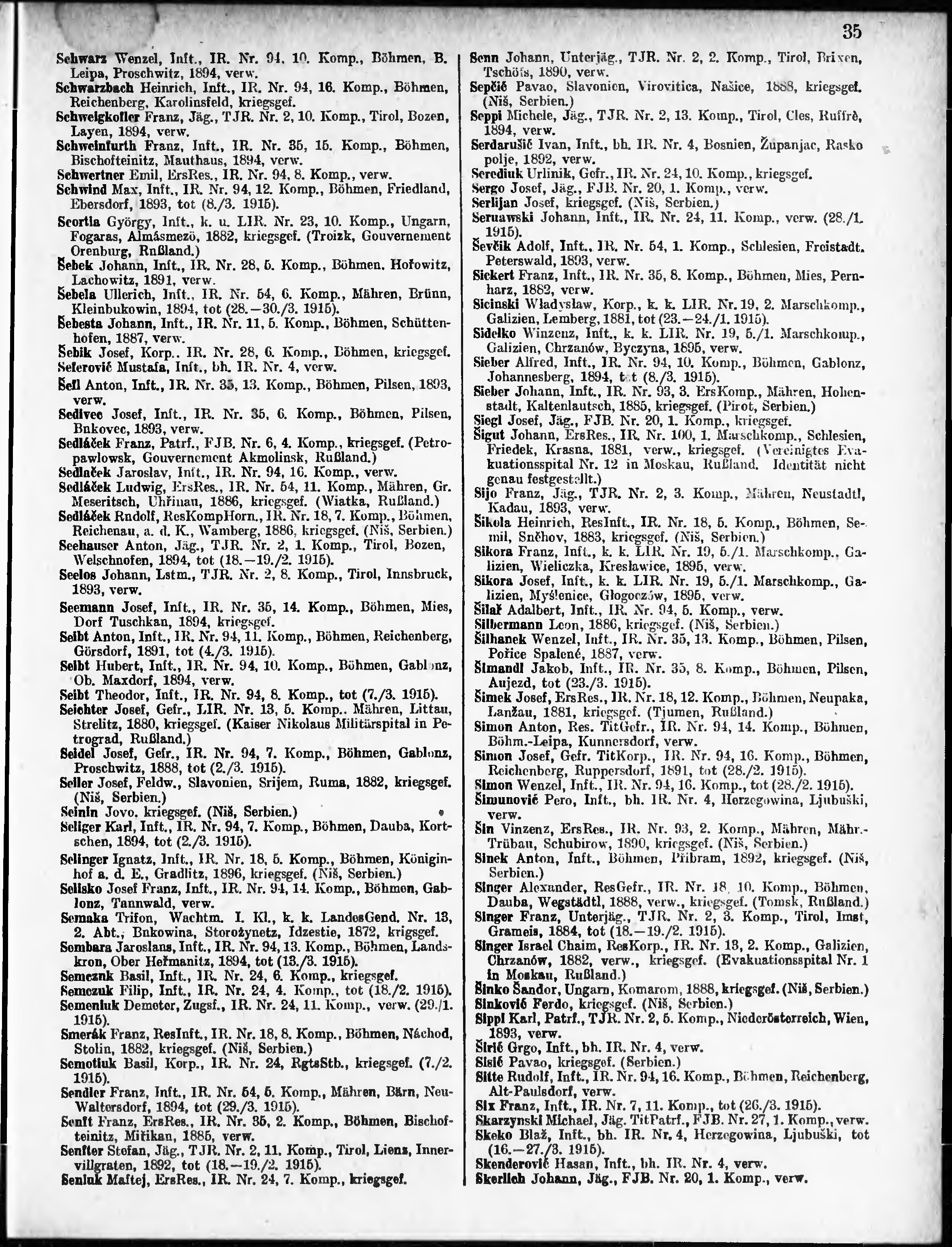 Verlustliste ausgegeben am