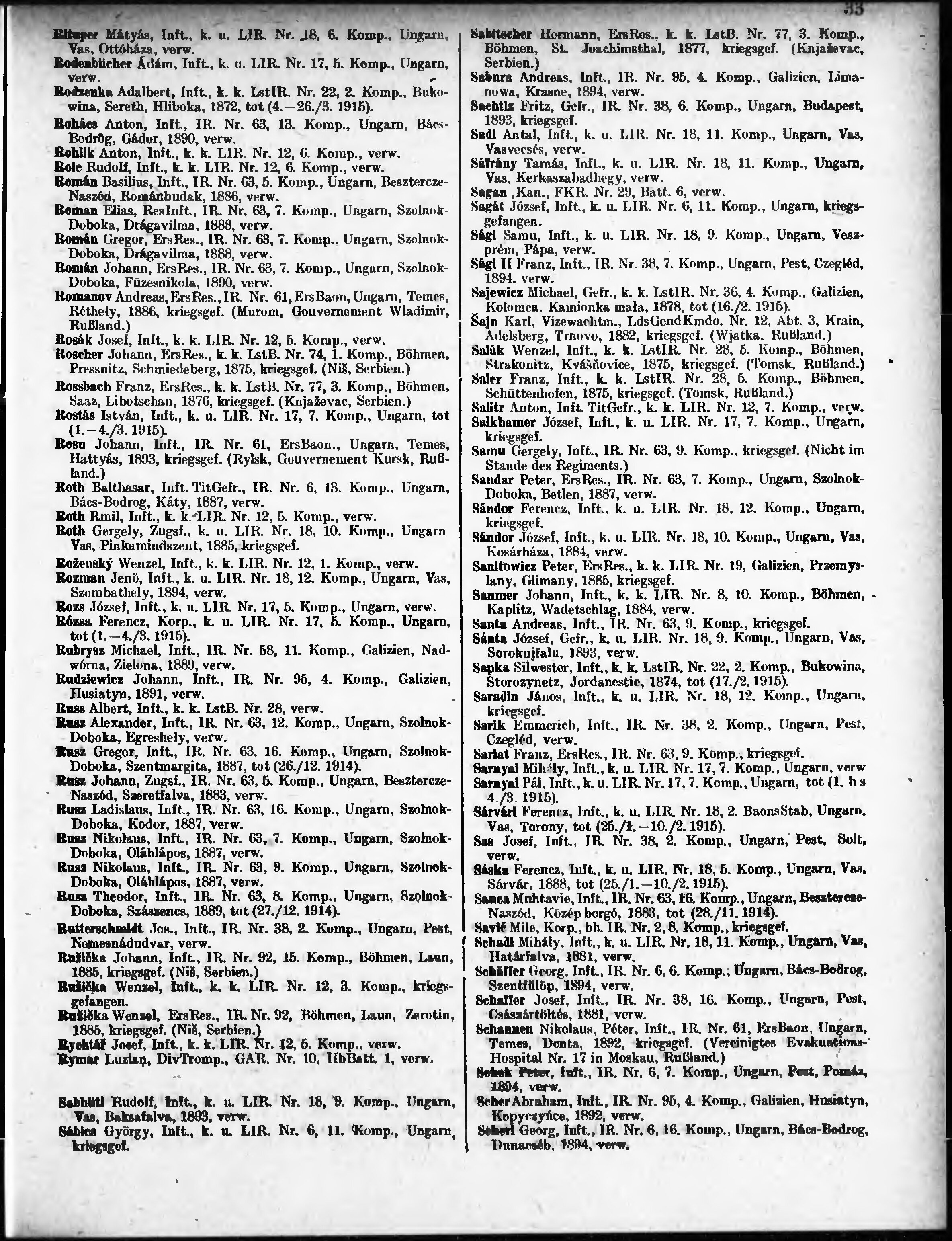 Verlustliste ausgegeben am