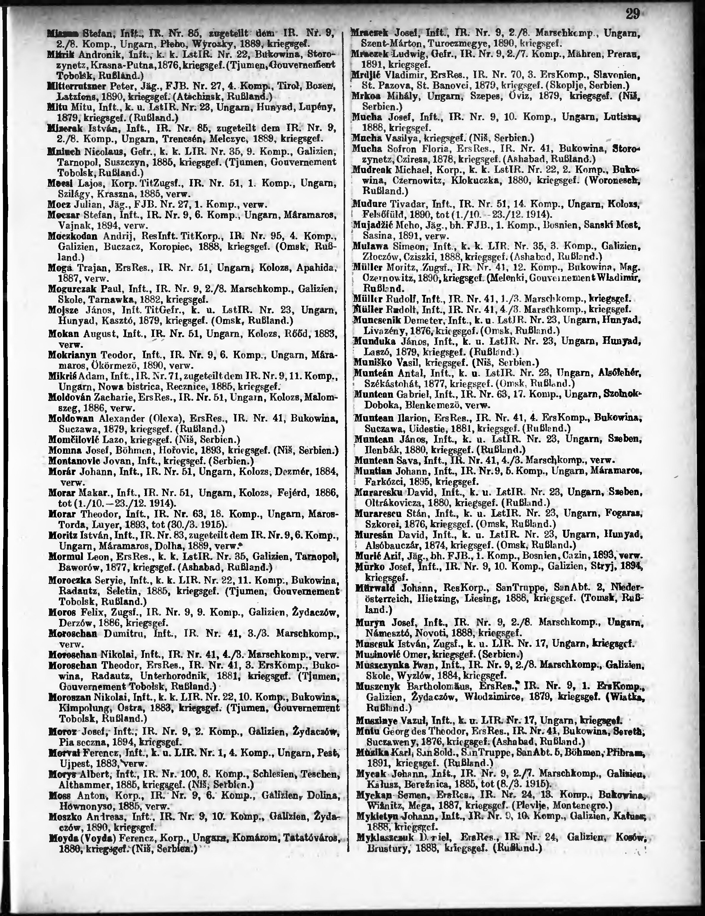 Verlustliste ausgegeben am
