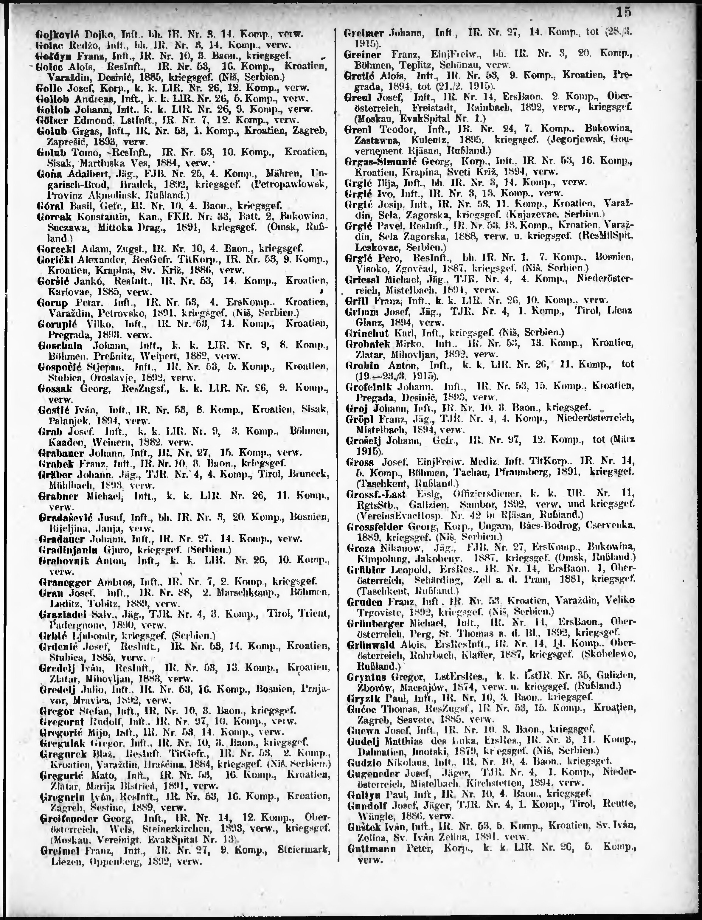 Verlustliste ausgegeben am
