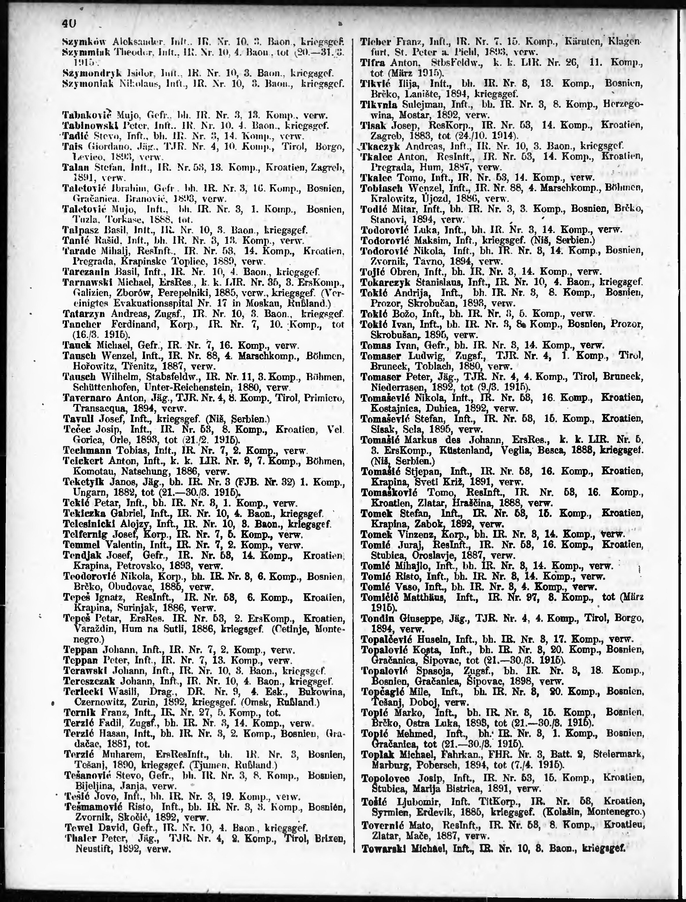 Verlustliste ausgegeben am