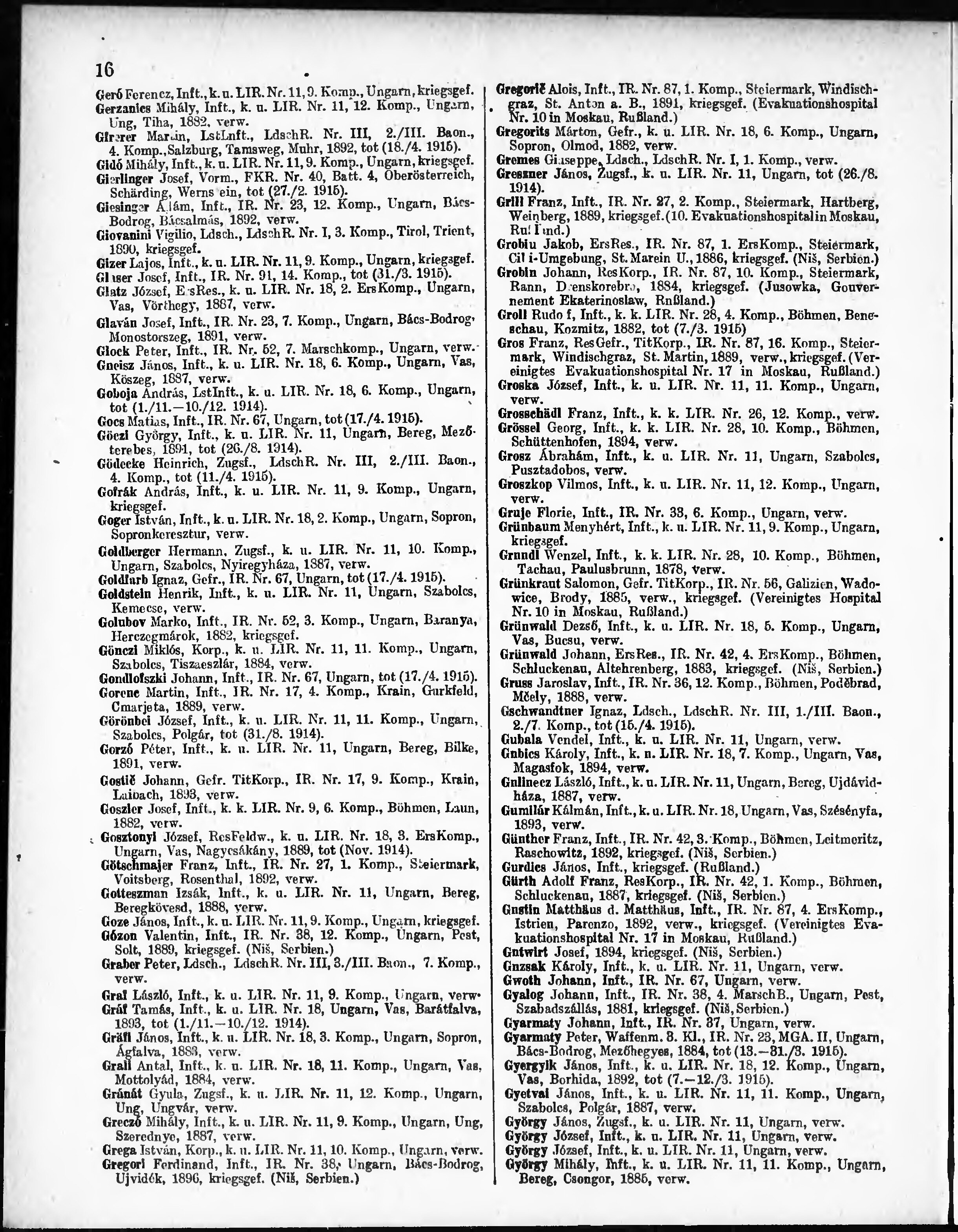 Verlustliste ausgegeben am