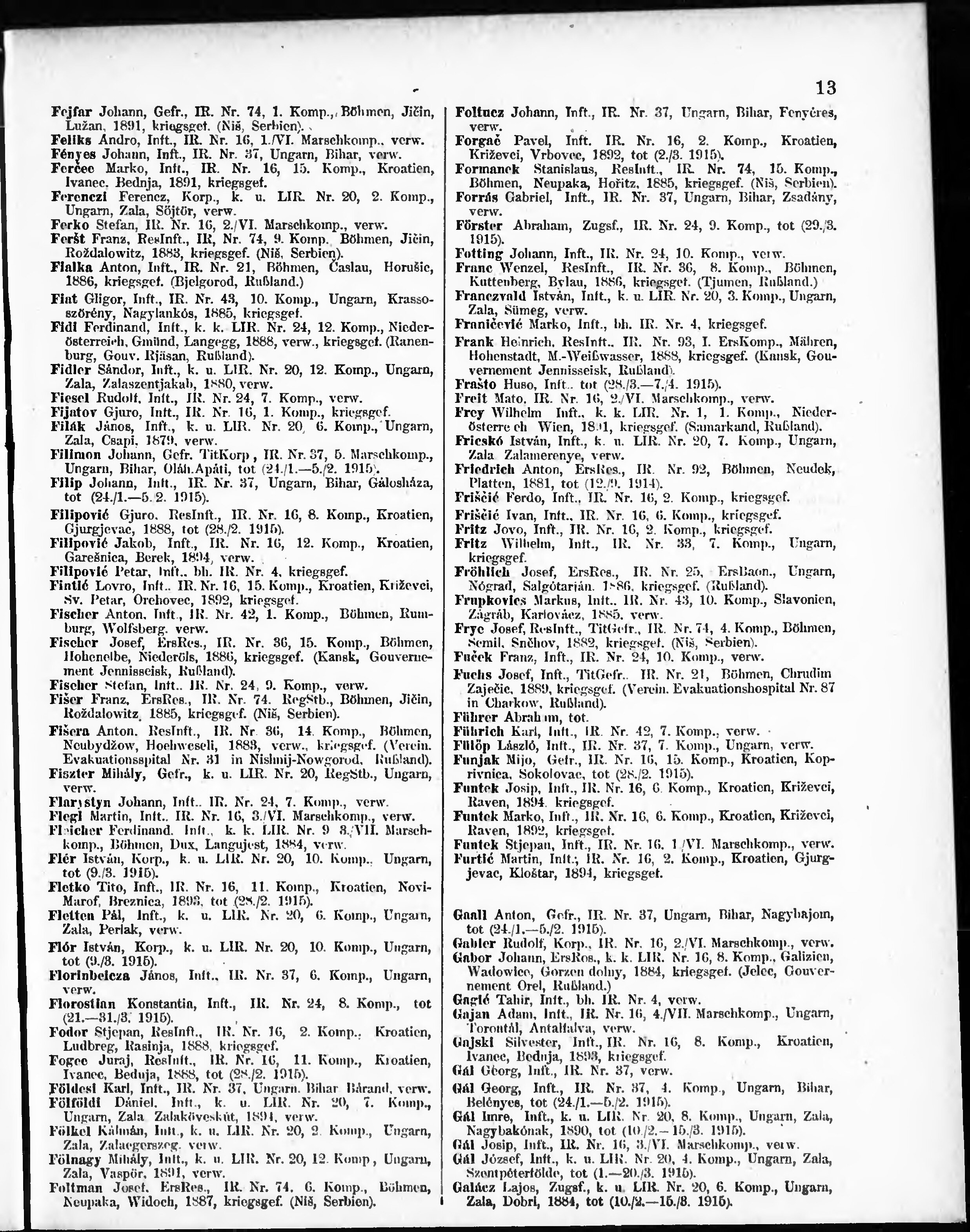 Verlustliste ausgegeben am