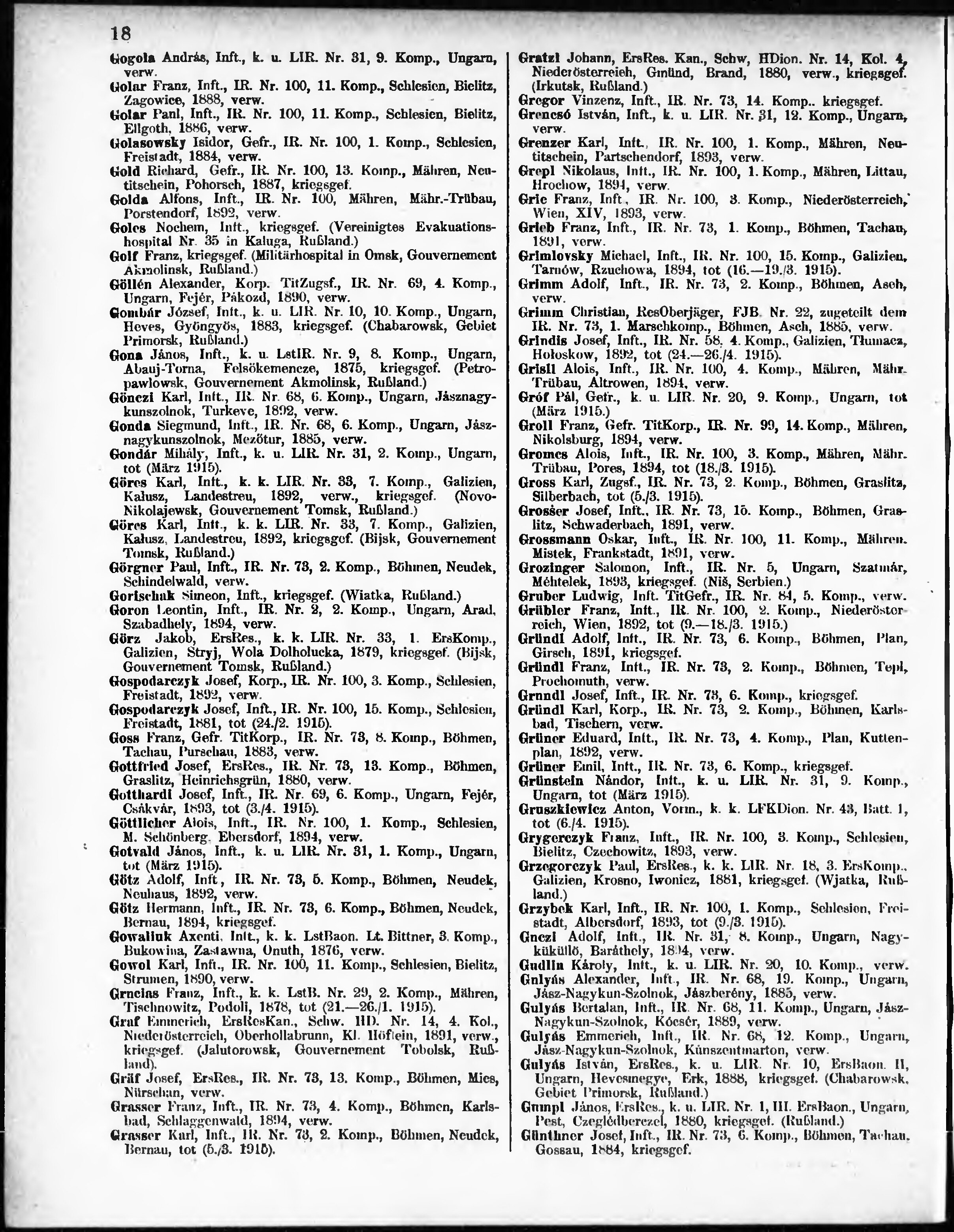 Verlustliste ausgegeben am