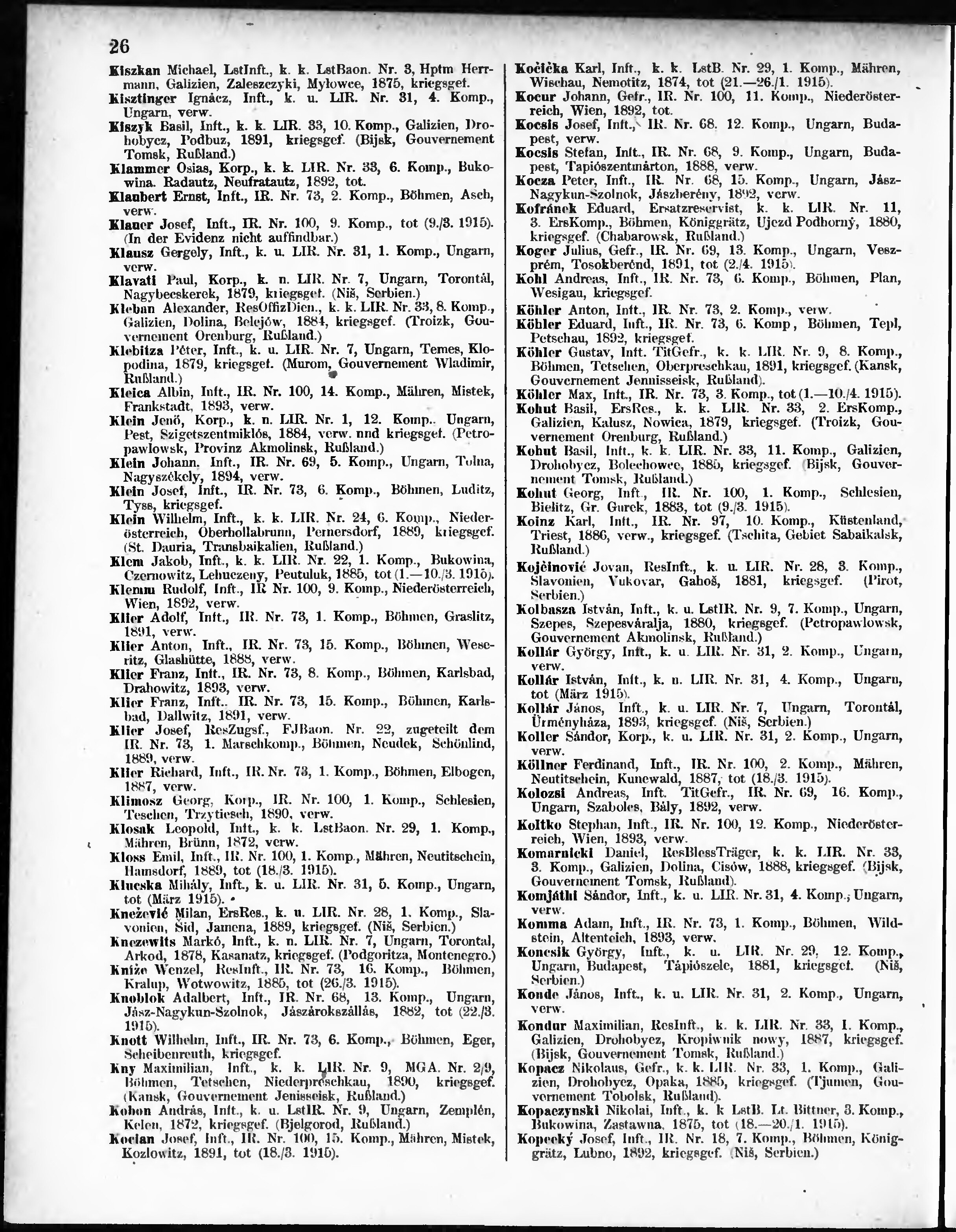 Verlustliste ausgegeben am