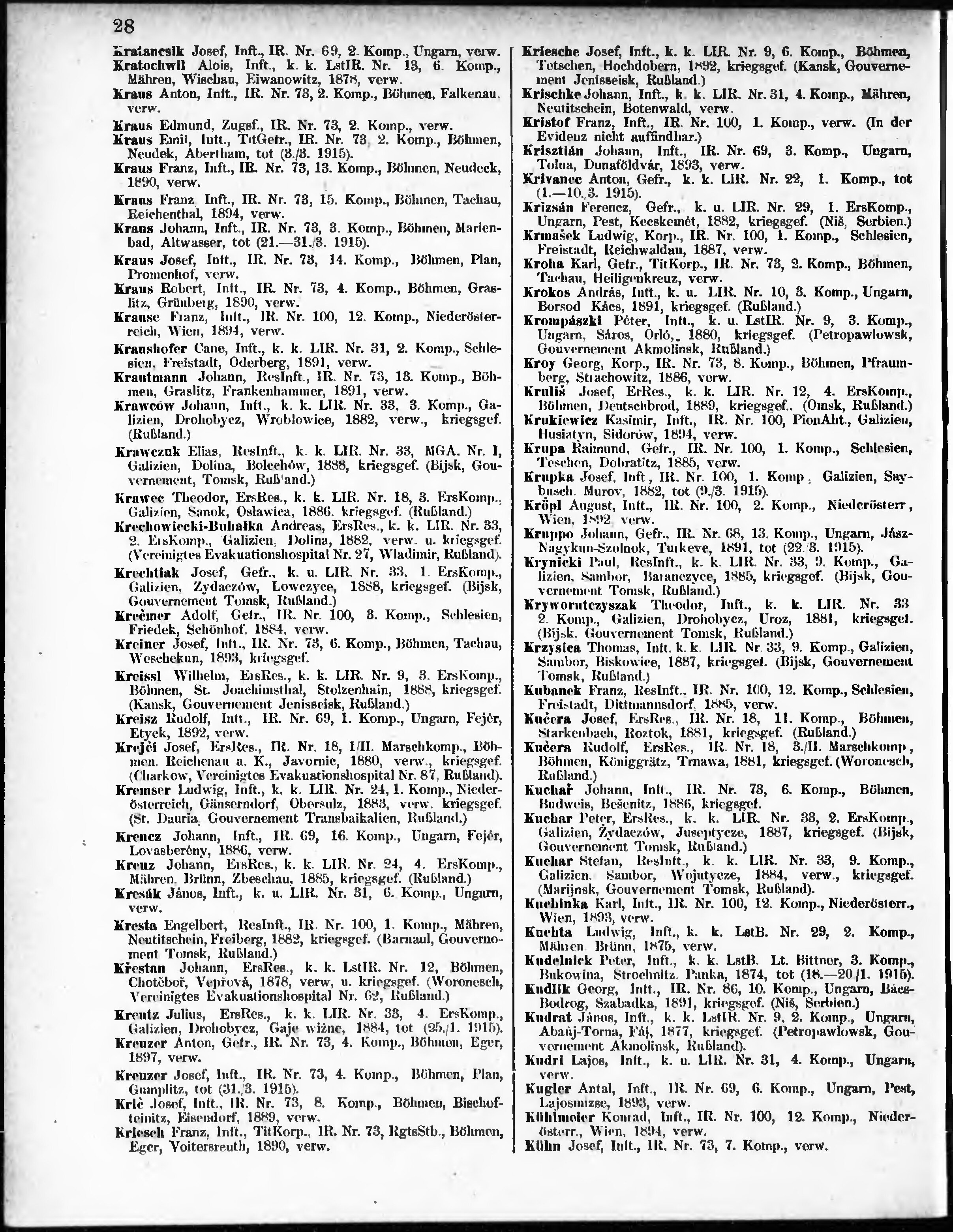 Verlustliste ausgegeben am