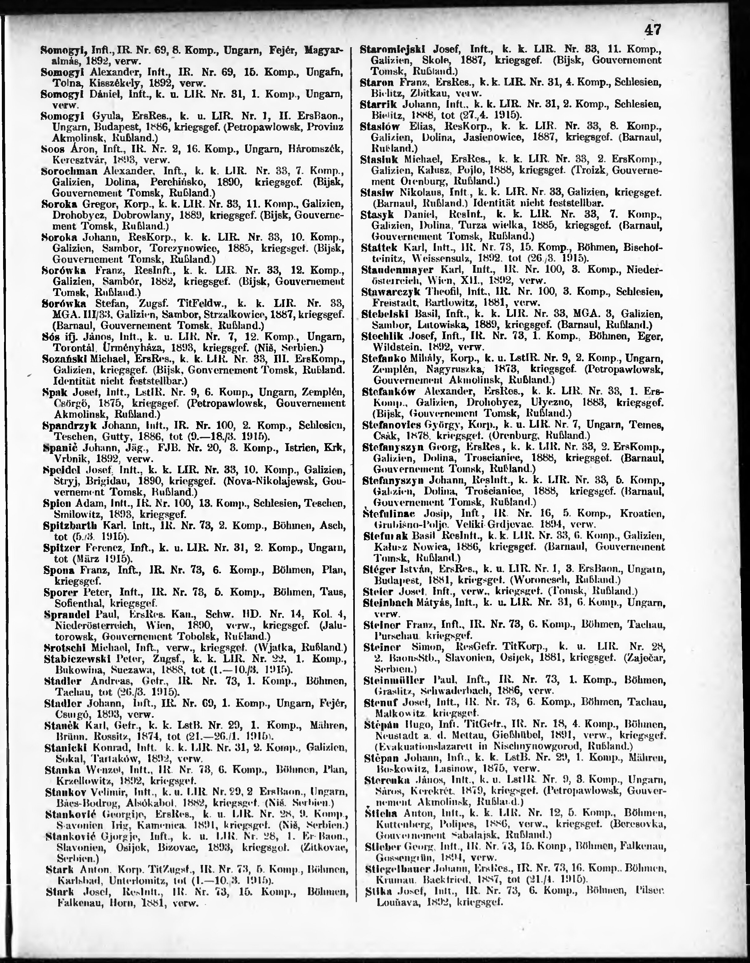Verlustliste ausgegeben am