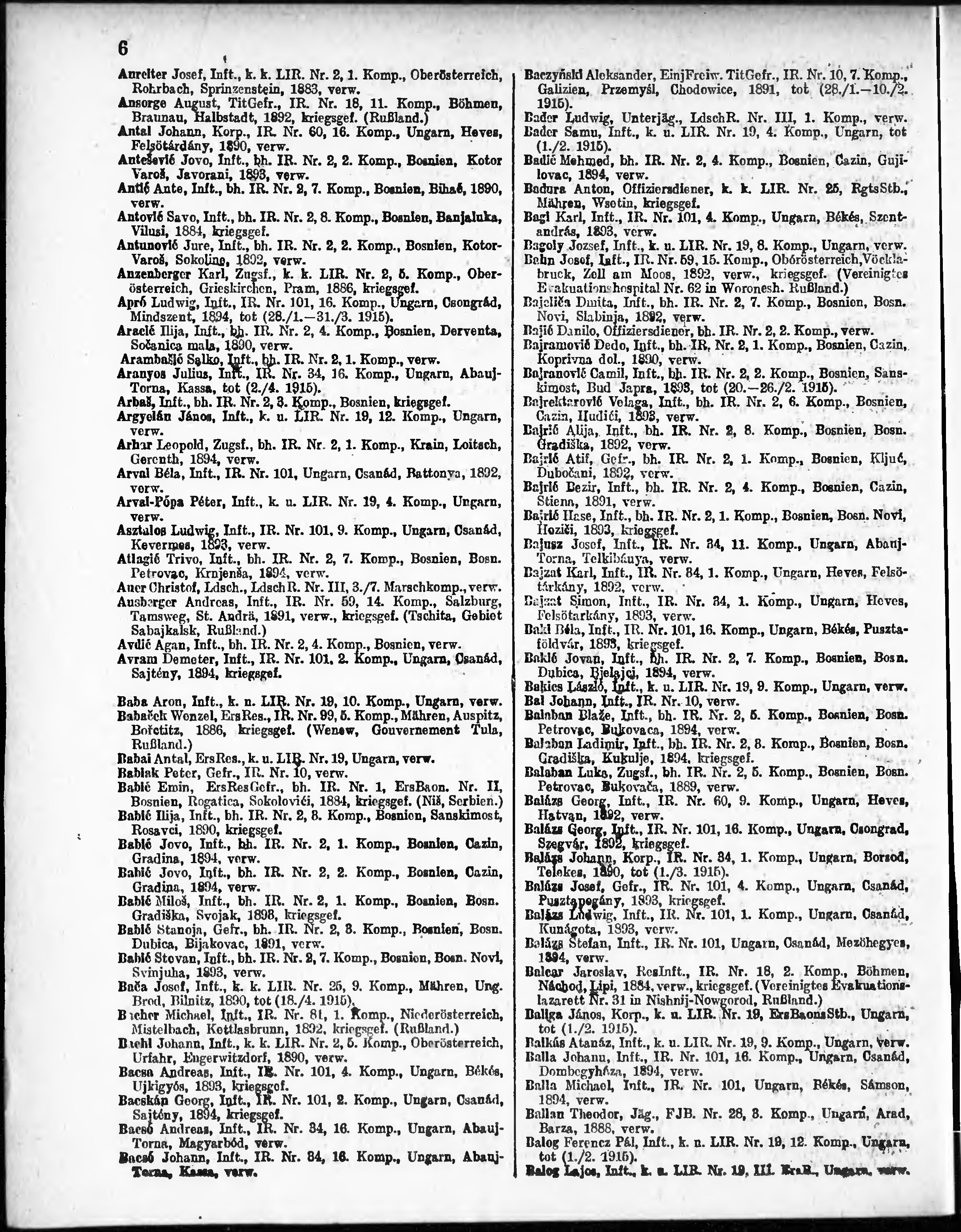 Verlustliste ausgegeben am