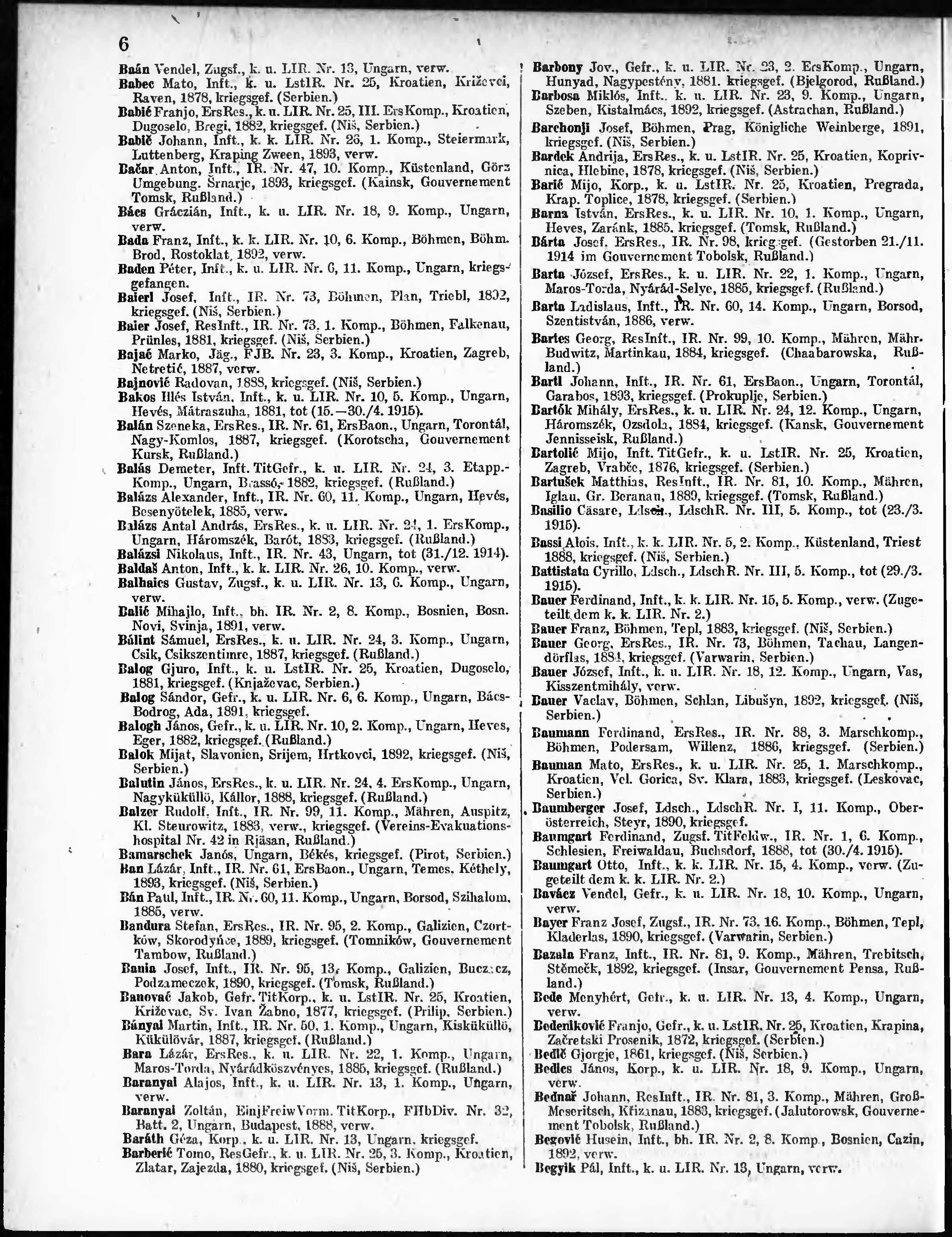 Verlustliste ausgegeben am
