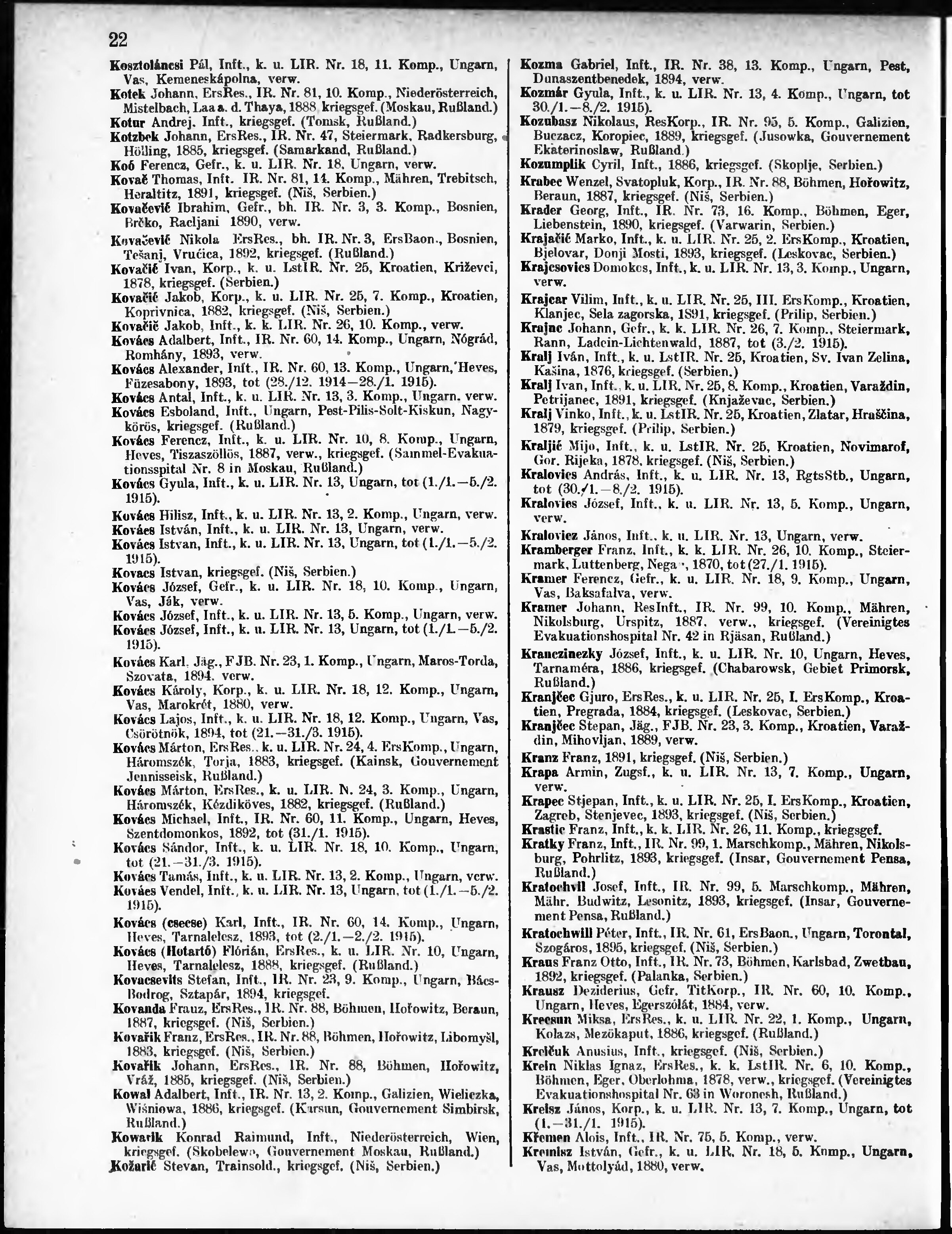 Verlustliste ausgegeben am