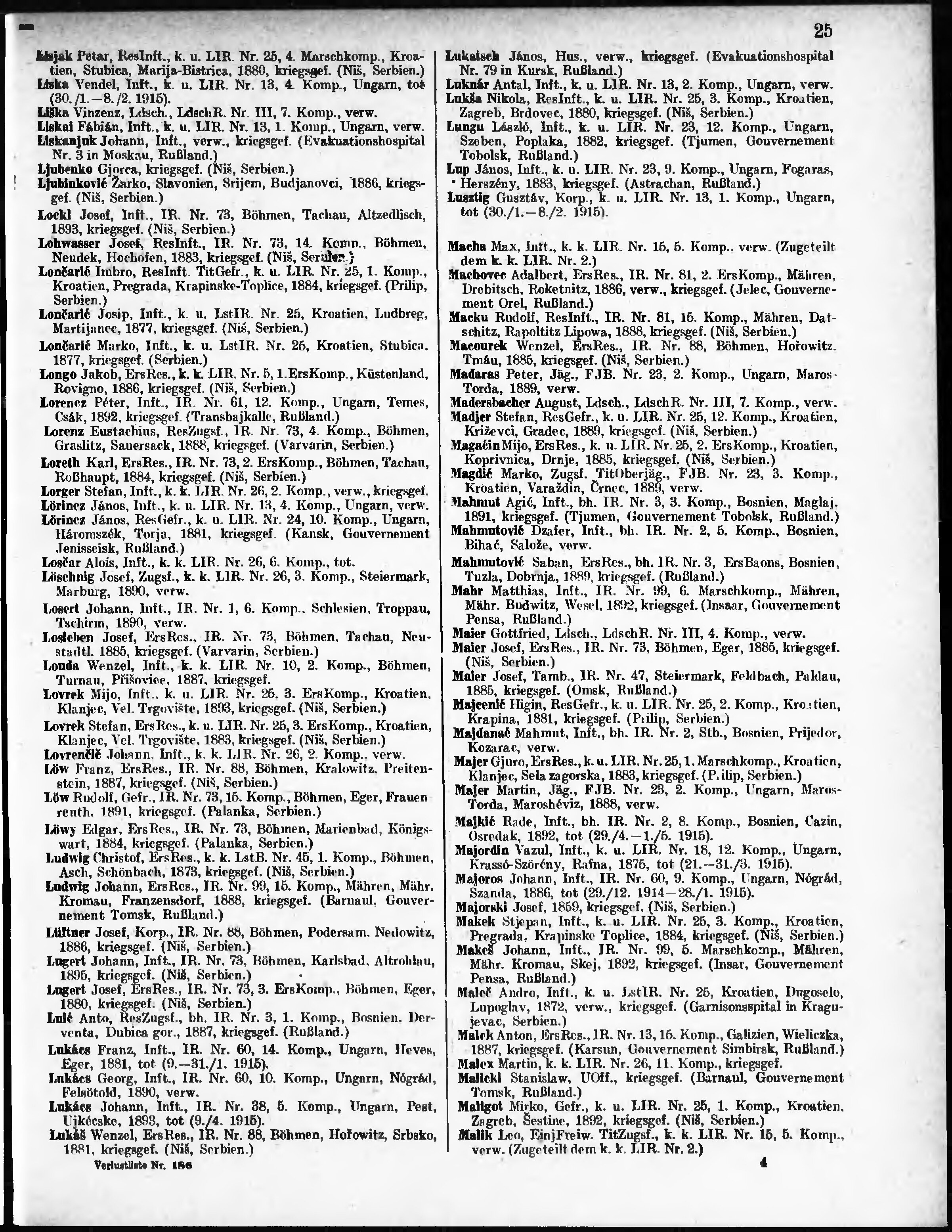 Verlustliste ausgegeben am