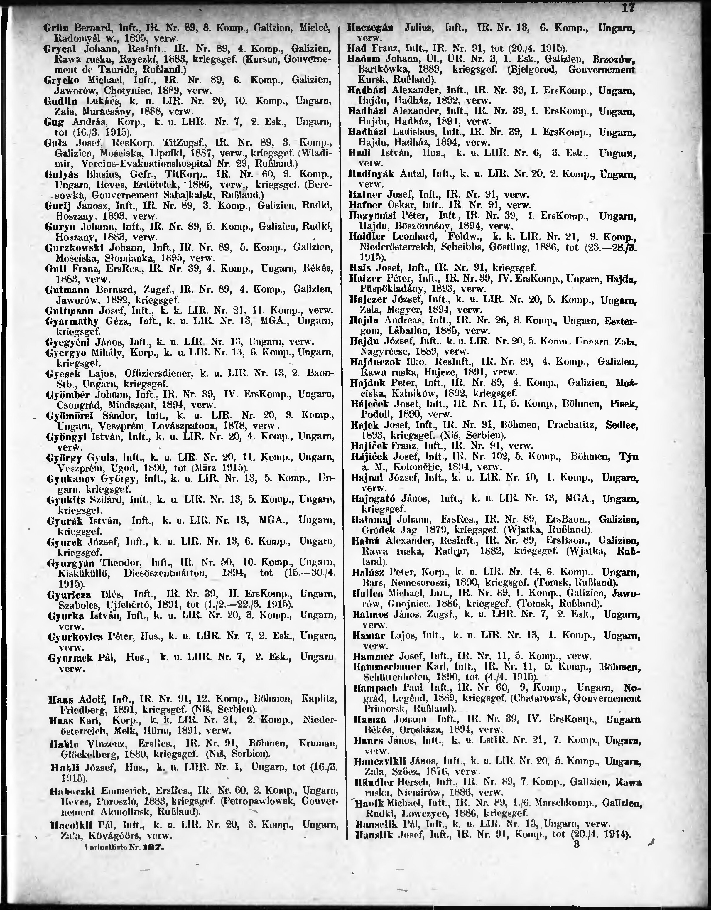 Verlustliste ausgegeben am