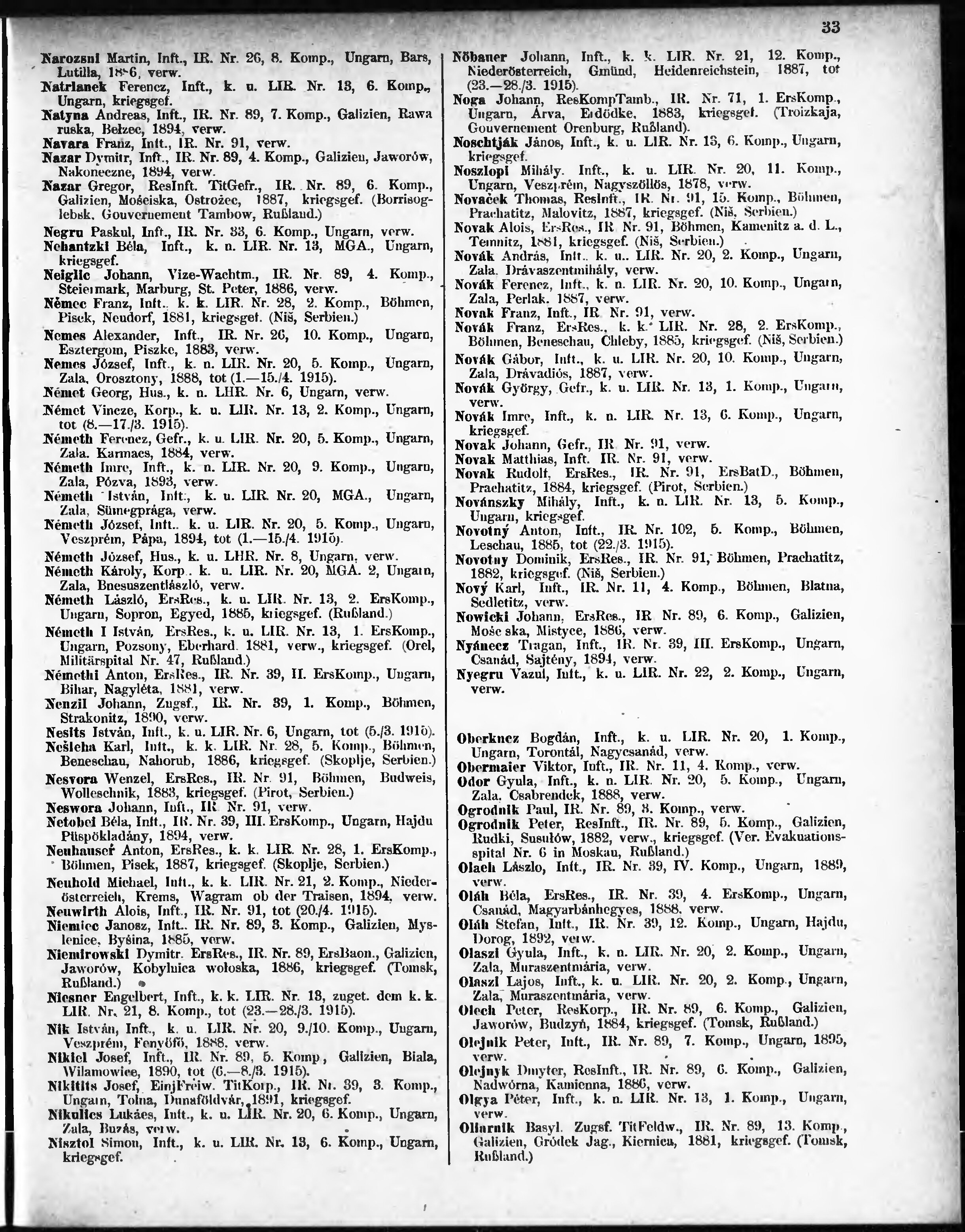 Verlustliste ausgegeben am