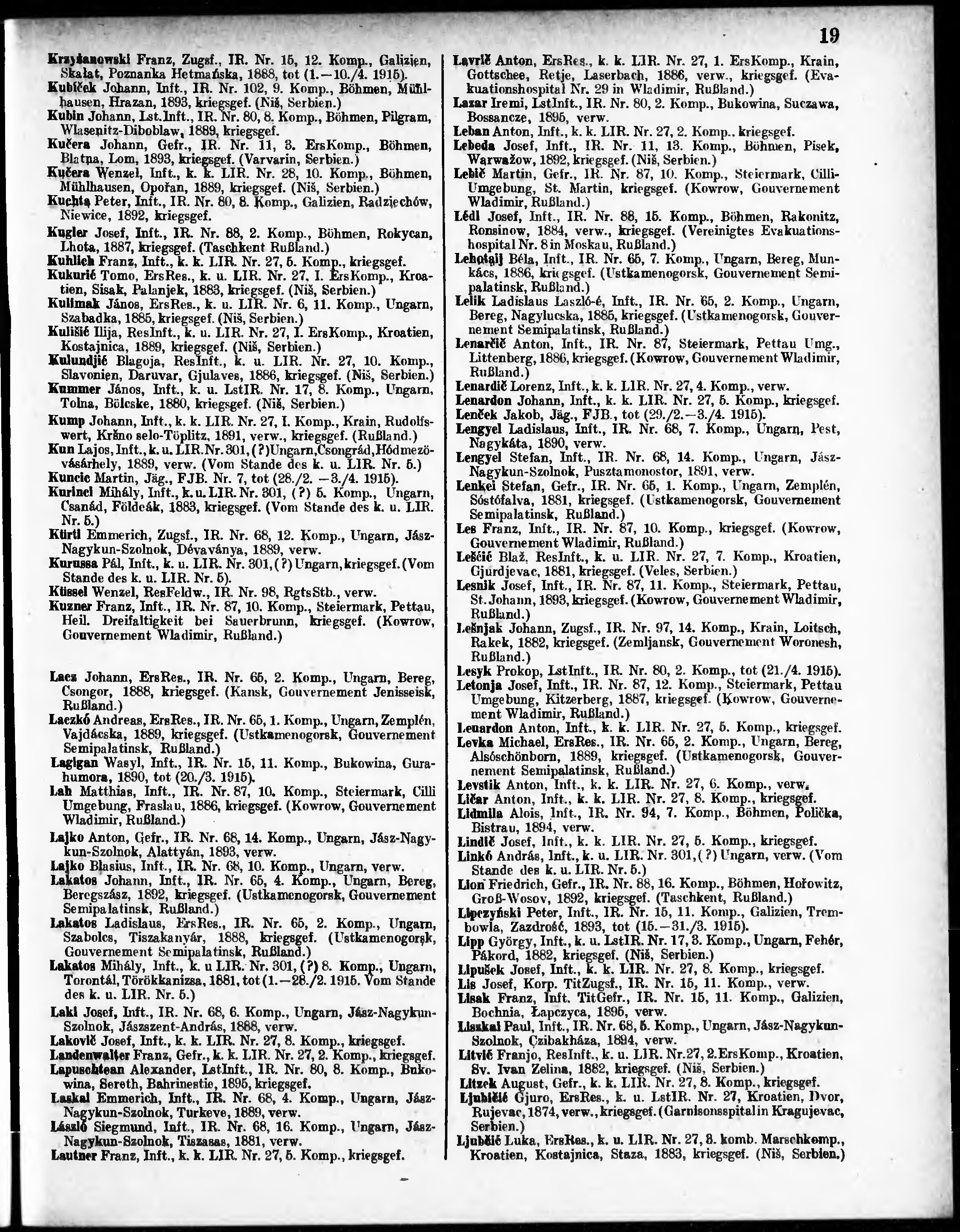 Verlustliste ausgegeben am