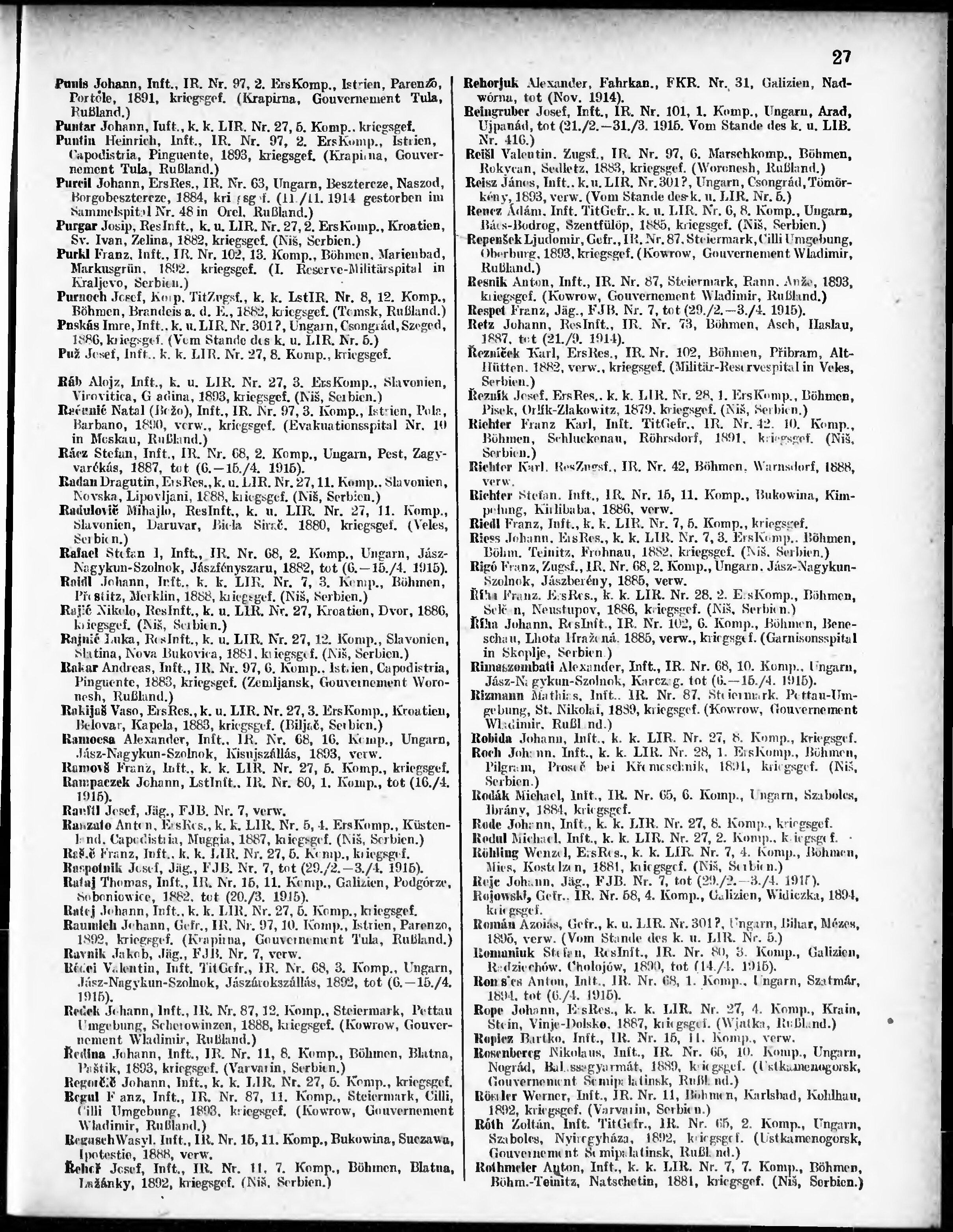 Verlustliste ausgegeben am