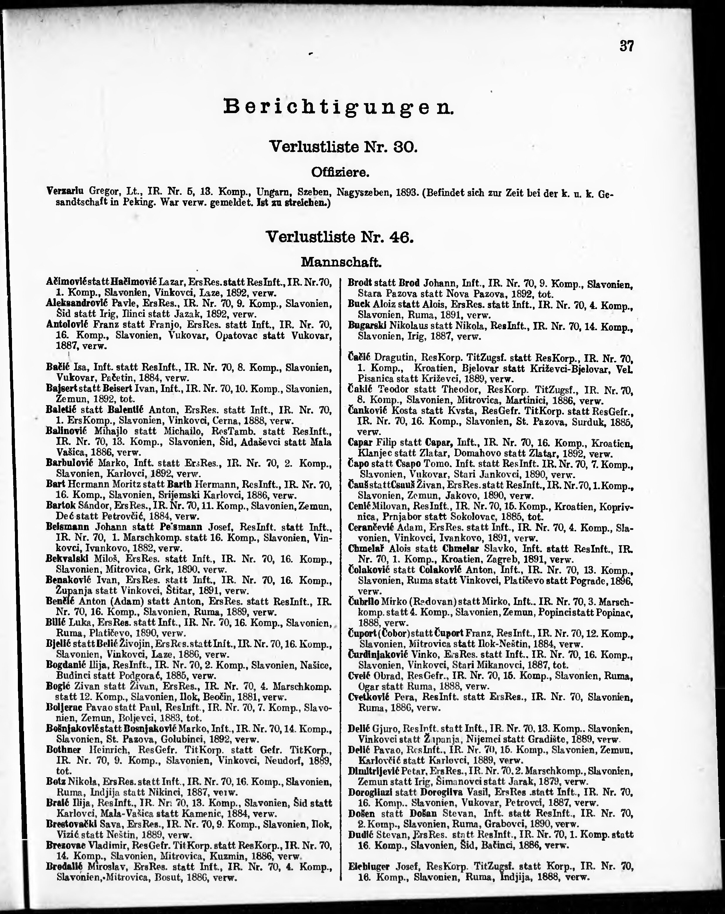 Verlustliste ausgegeben am