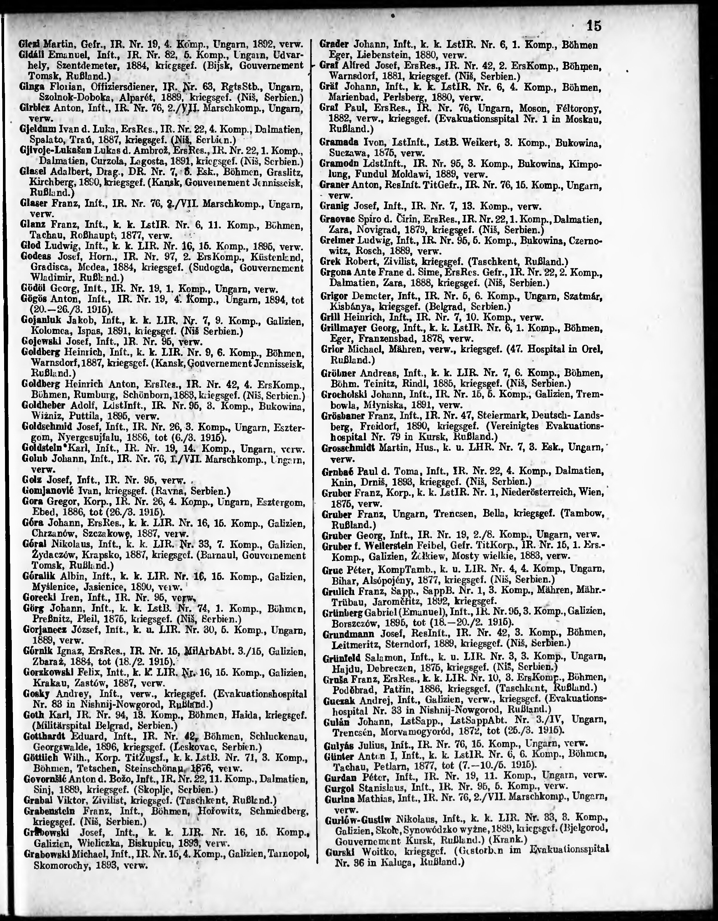 Verlustliste ausgegeben am
