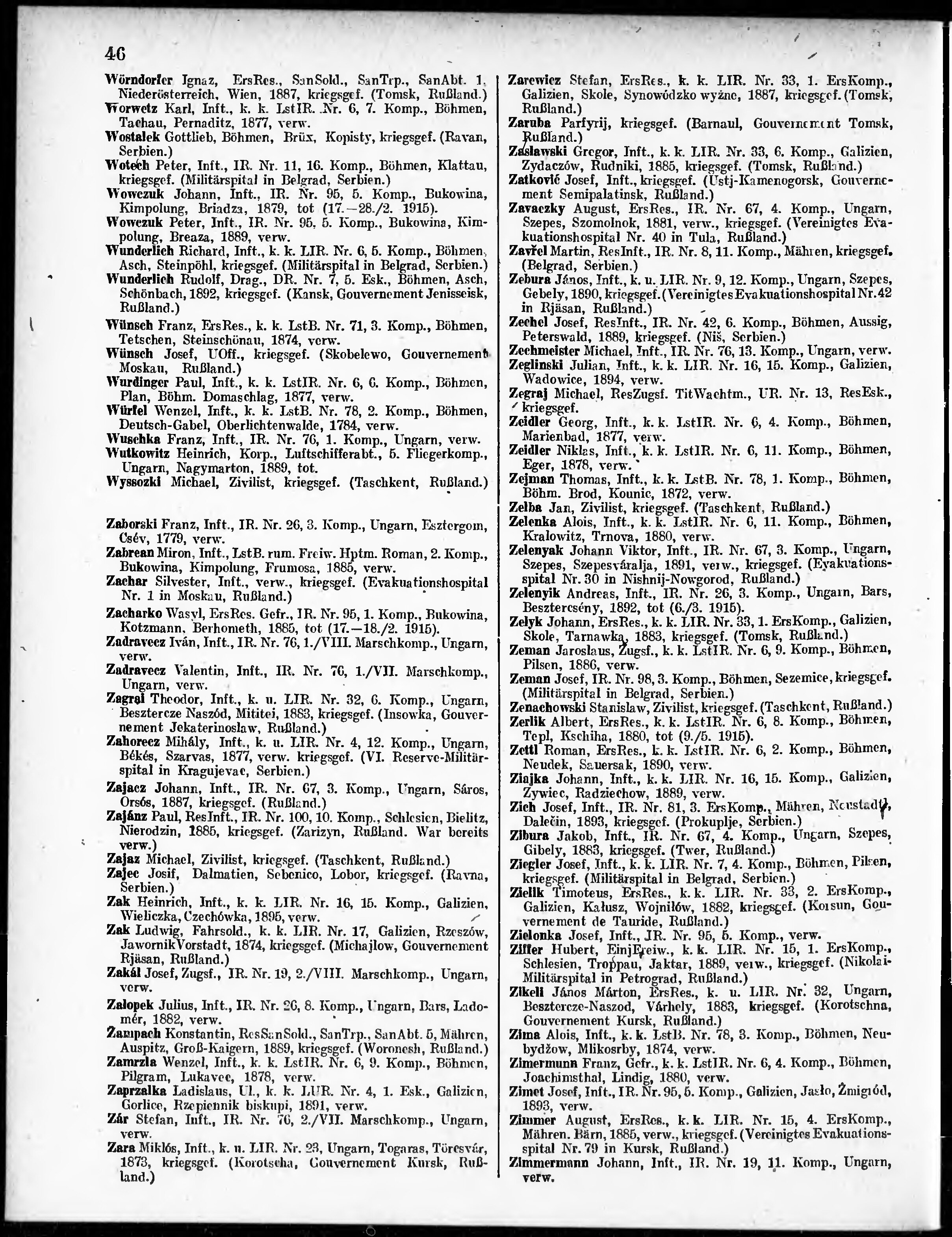 Verlustliste ausgegeben am