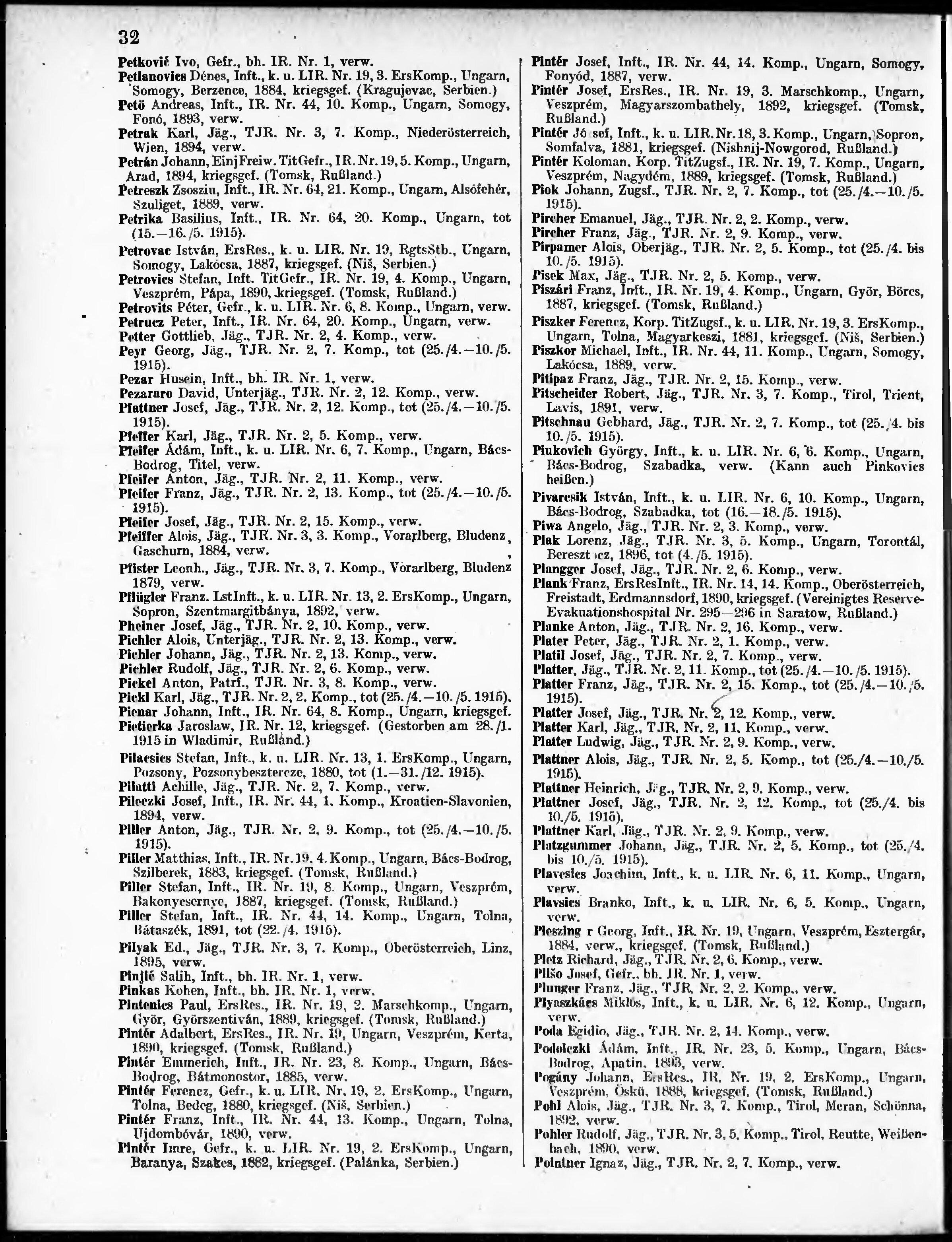 Verlustliste ausgegeben am