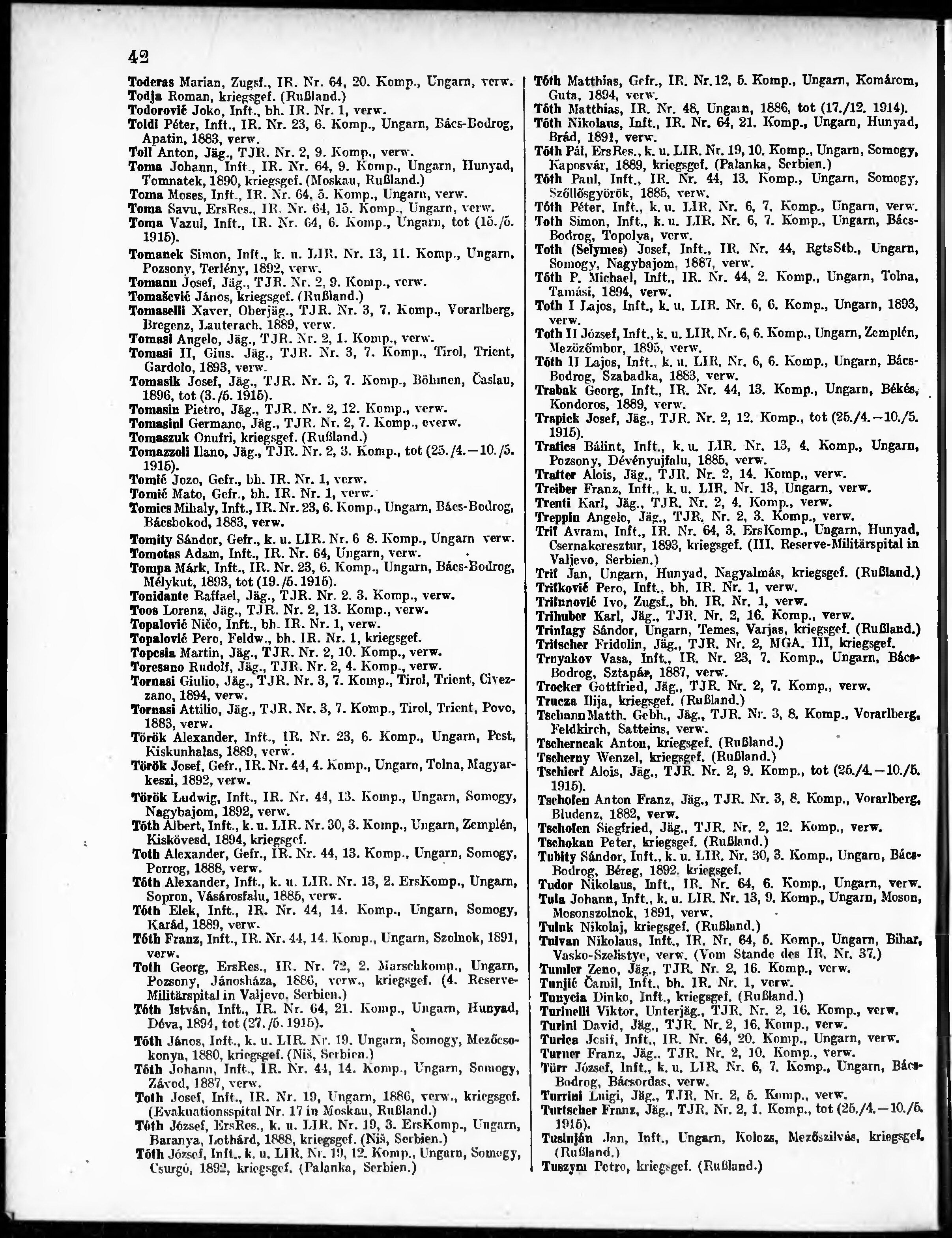 Verlustliste ausgegeben am