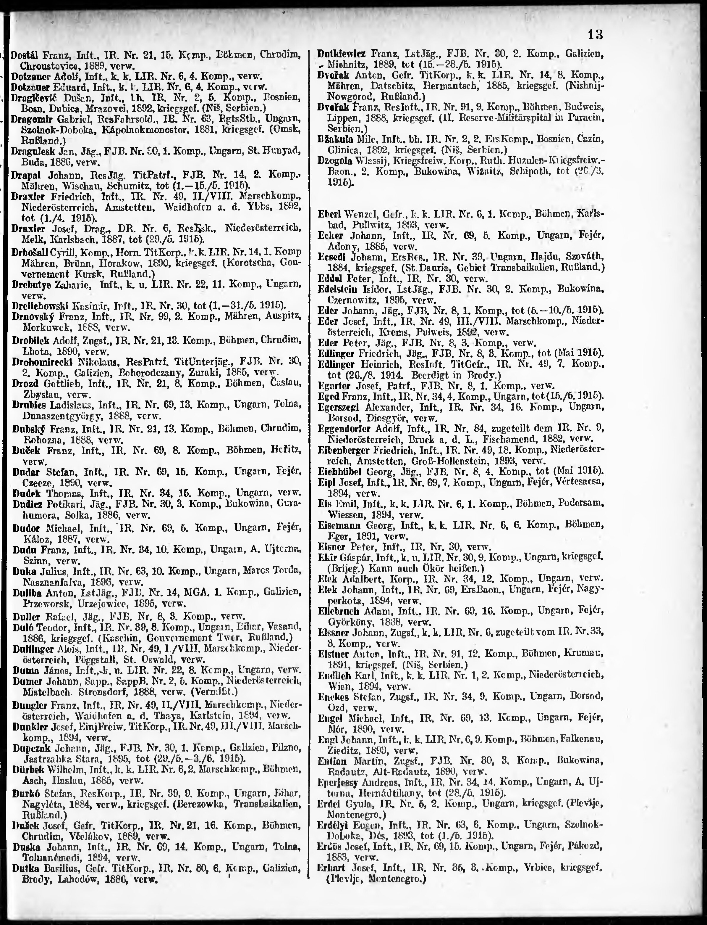 Verlustliste ausgegeben am