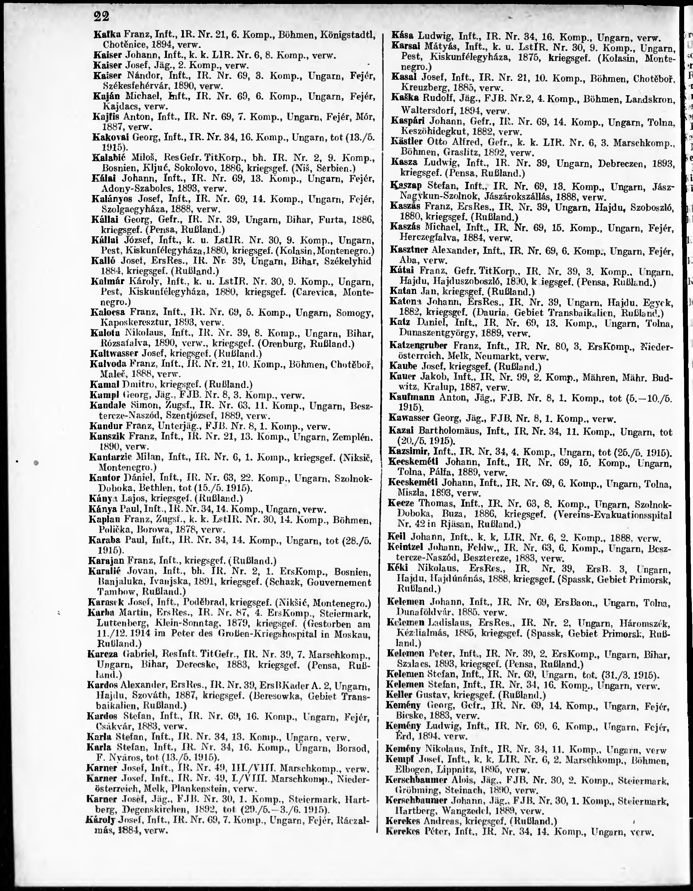 Verlustliste ausgegeben am