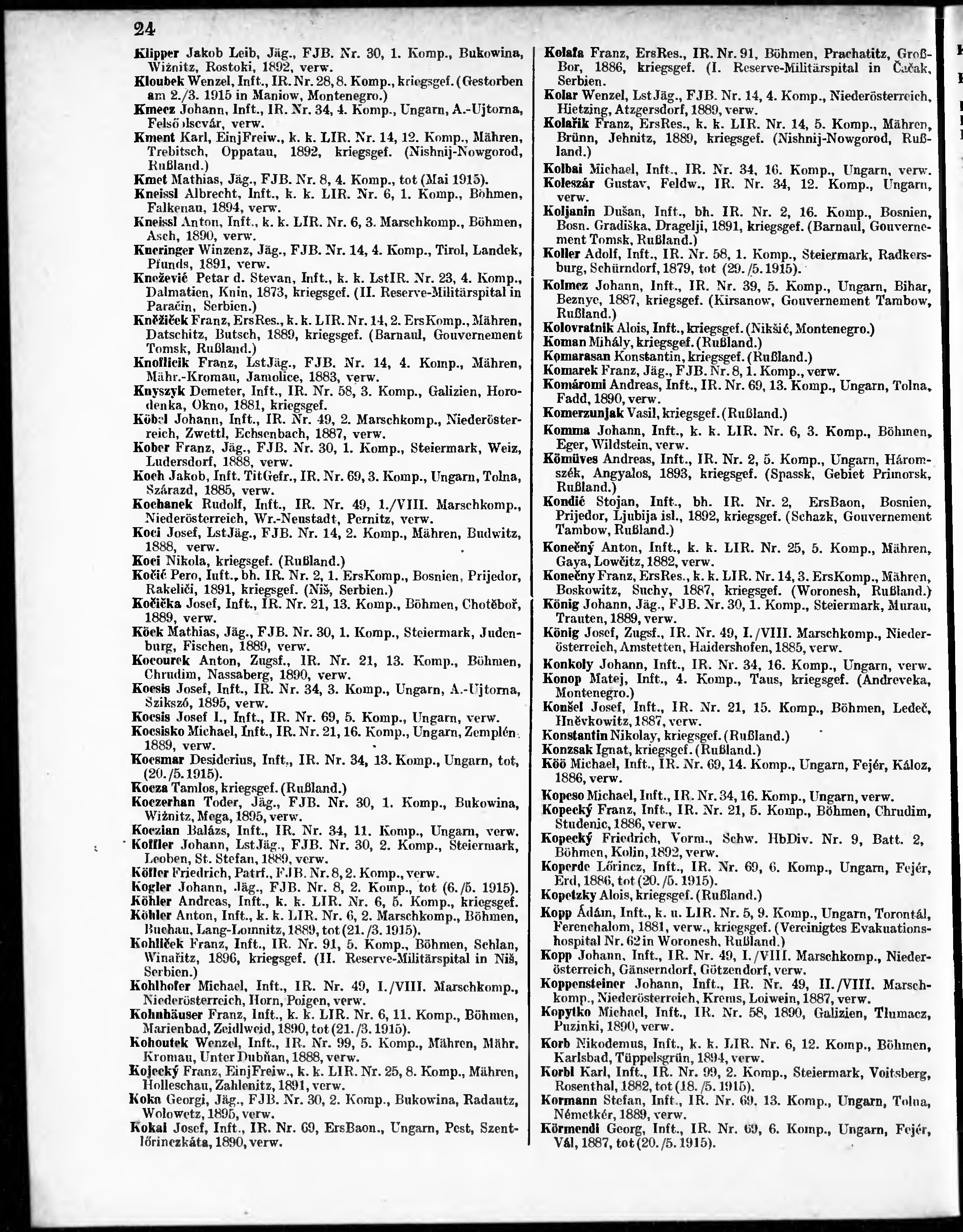Verlustliste ausgegeben am