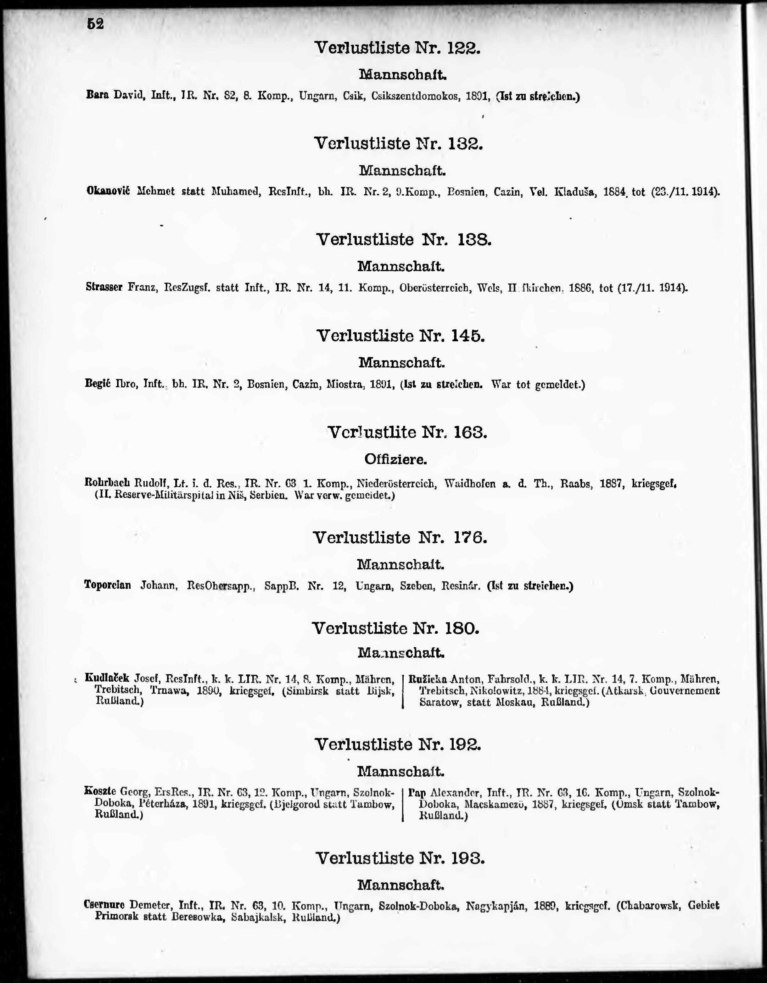 Verlustliste ausgegeben am